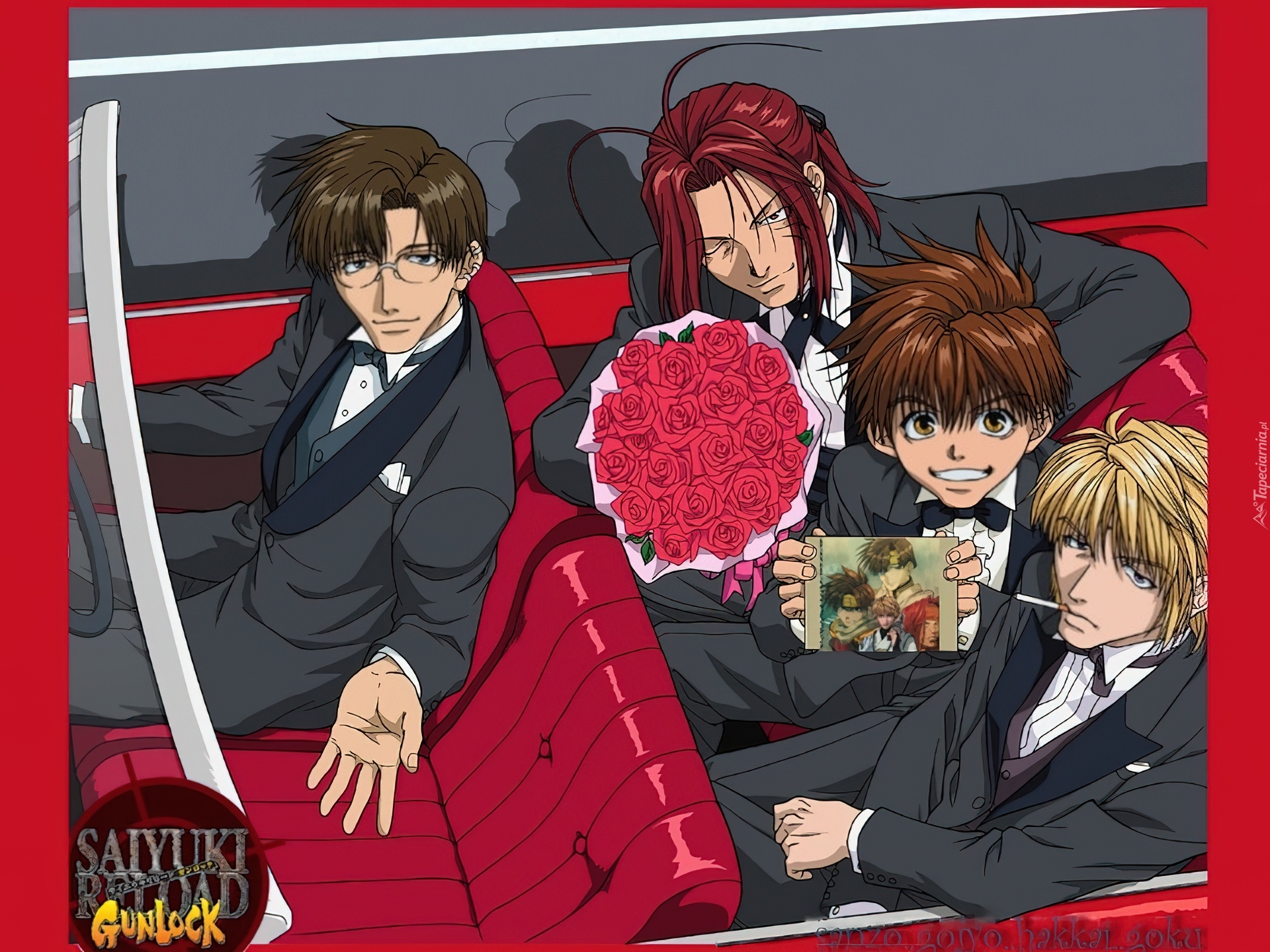 Edytor tapety: Saiyuki, samochód, czerowne, skóry