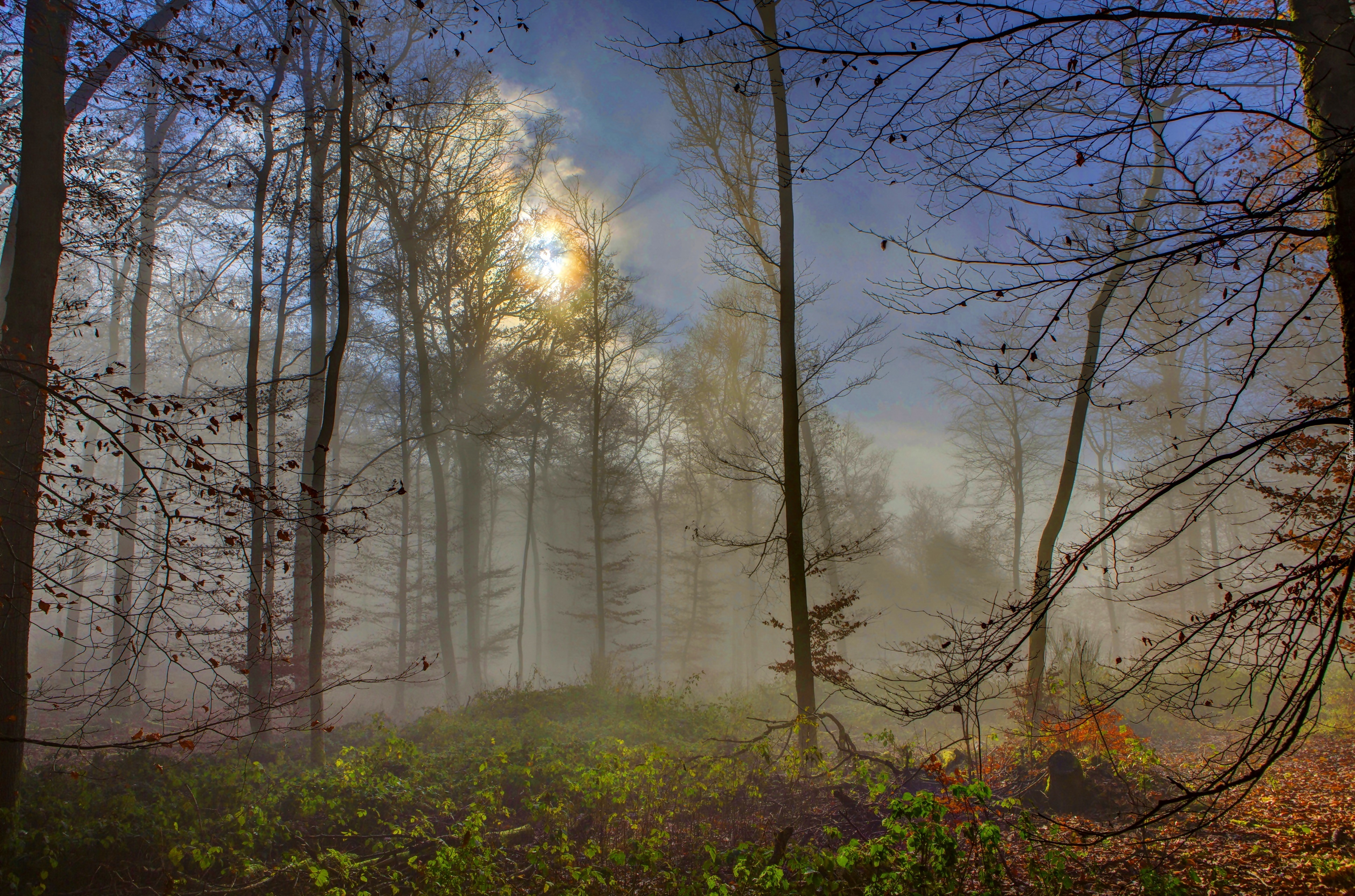 Edytor tapety: Jesień, Las, Mgła, Przebijające, Światło