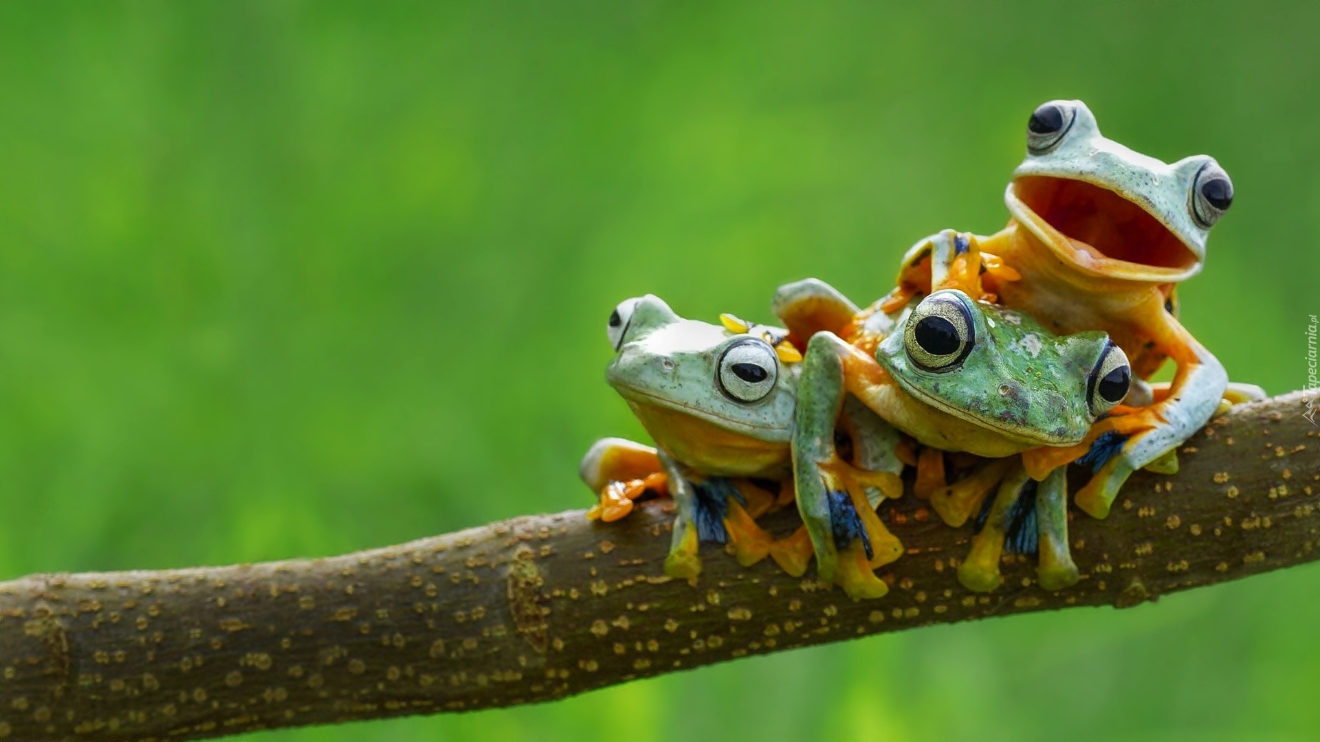 Edytor tapety: Trzy, Zielone, Żaby, Rzekotki