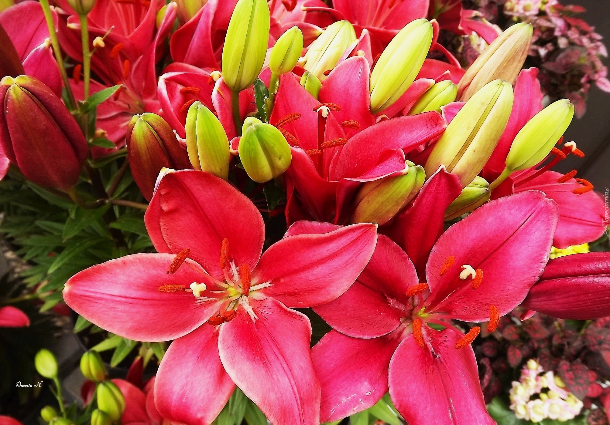 Edytor tapety: Liliowce, Czerwone, Pąki, Ogród