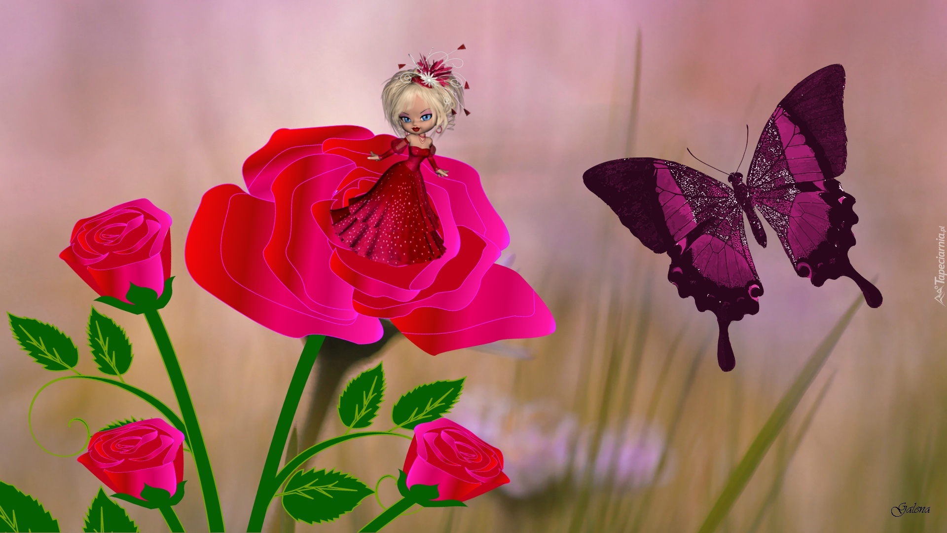 Edytor tapety: Kwiat, Motyl, Laleczka