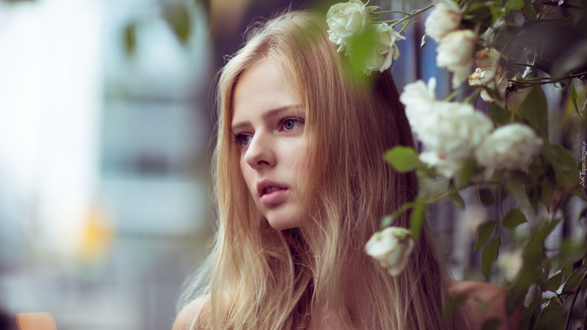 Edytor tapety: Kobieta, Twarz, Kwiaty