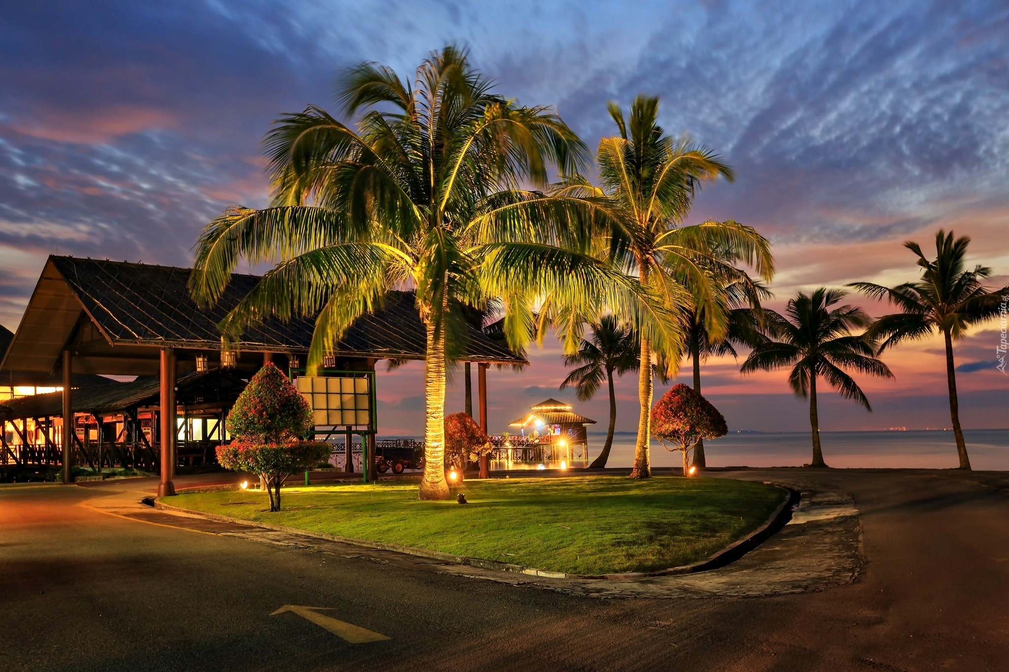 Edytor tapety: Tropiki, Kurort, Wieczór, Palmy