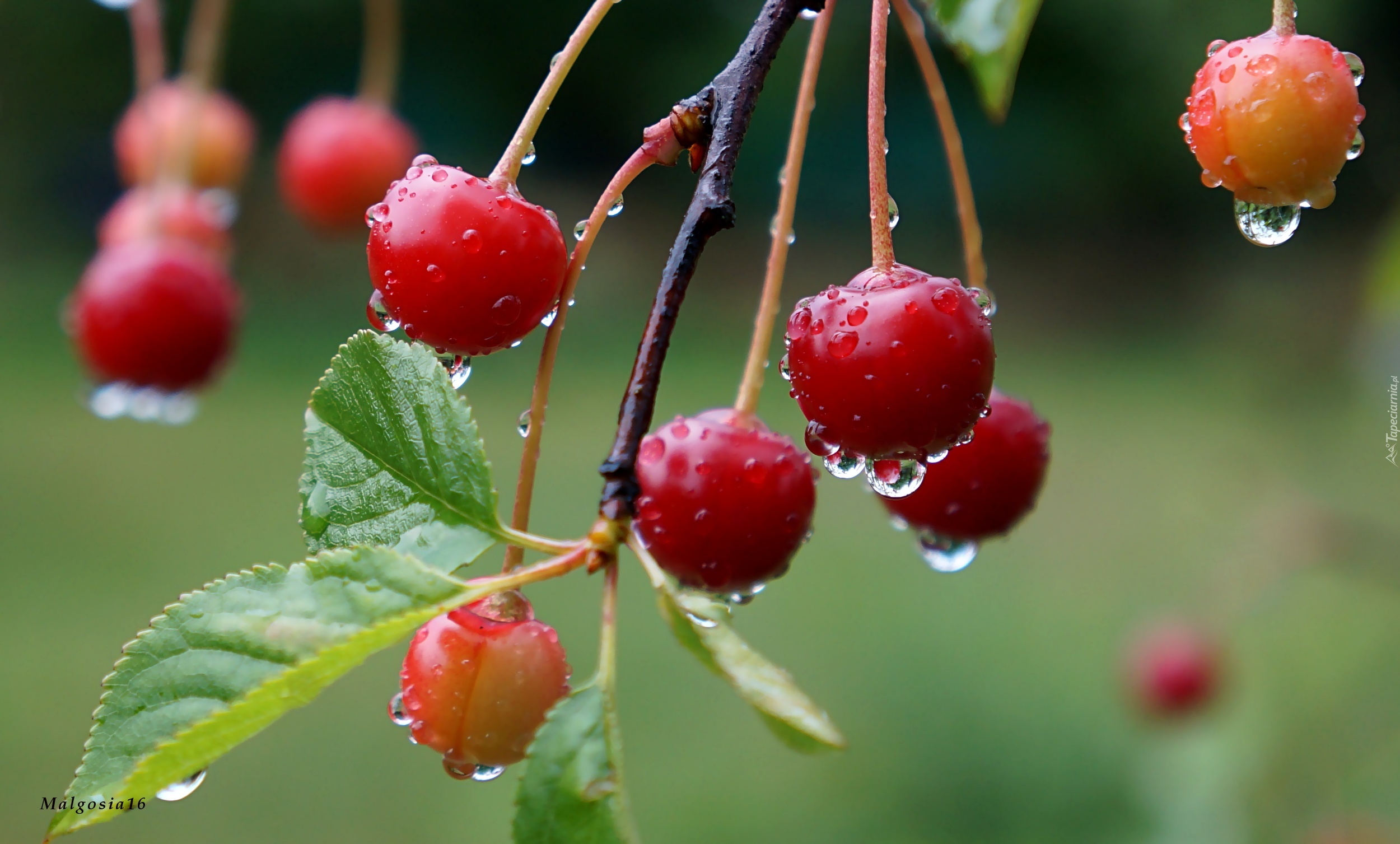 Edytor tapety: Owoce, Gałązki, Krople, Wiśnie