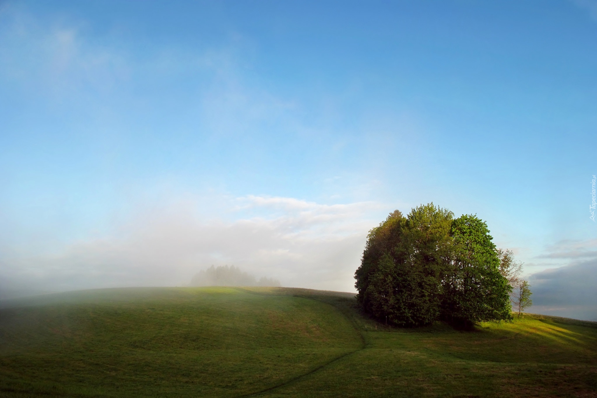 Edytor tapety: Łąka, Dróżka, Drzewo, Niebo