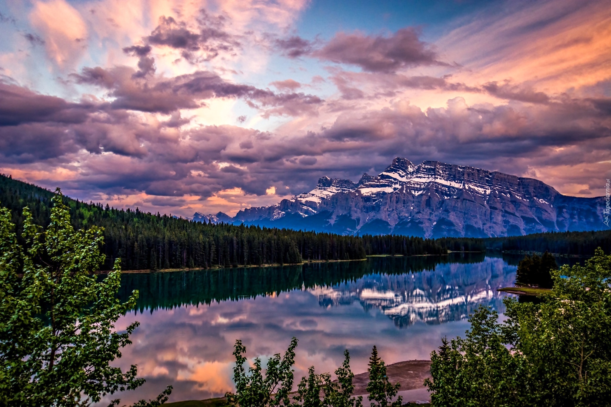 Edytor tapety: Góry, Jezioro, Lasy, Chmury