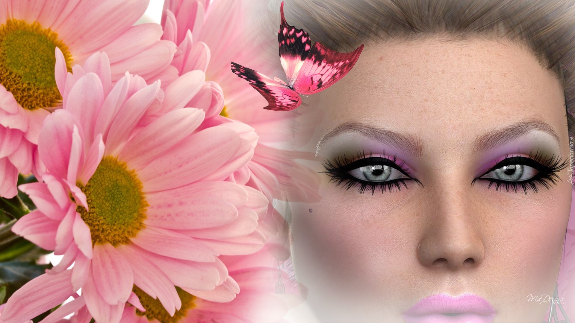 Edytor tapety: Kobieta, Gerbery, Motyl