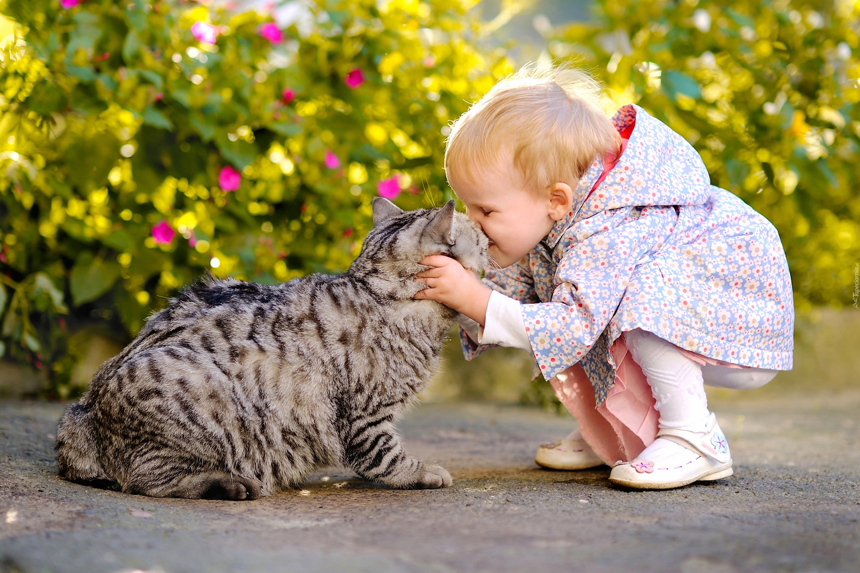 Edytor tapety: Kot, Dziecko, Przytulanie, Pocałunek