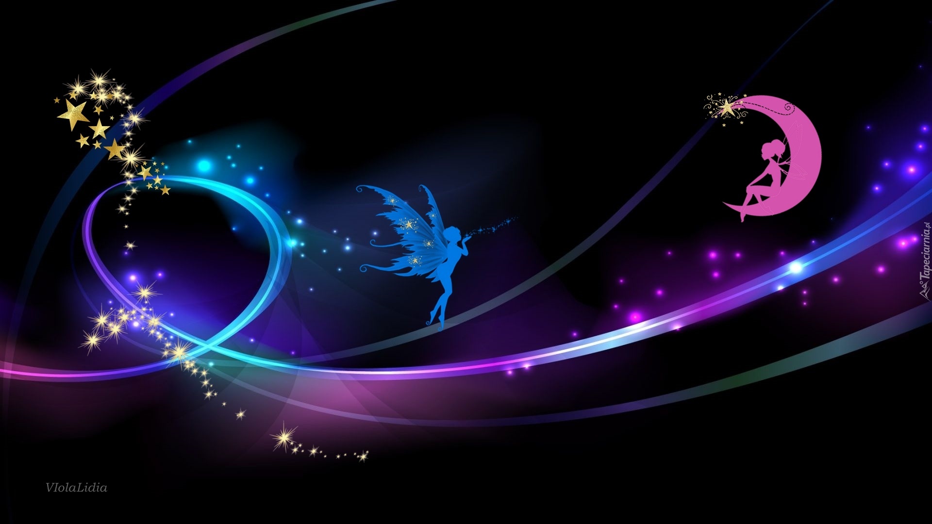 Edytor tapety: Grafika, Gwiazdki, Księżyc, Smugi, Elfy