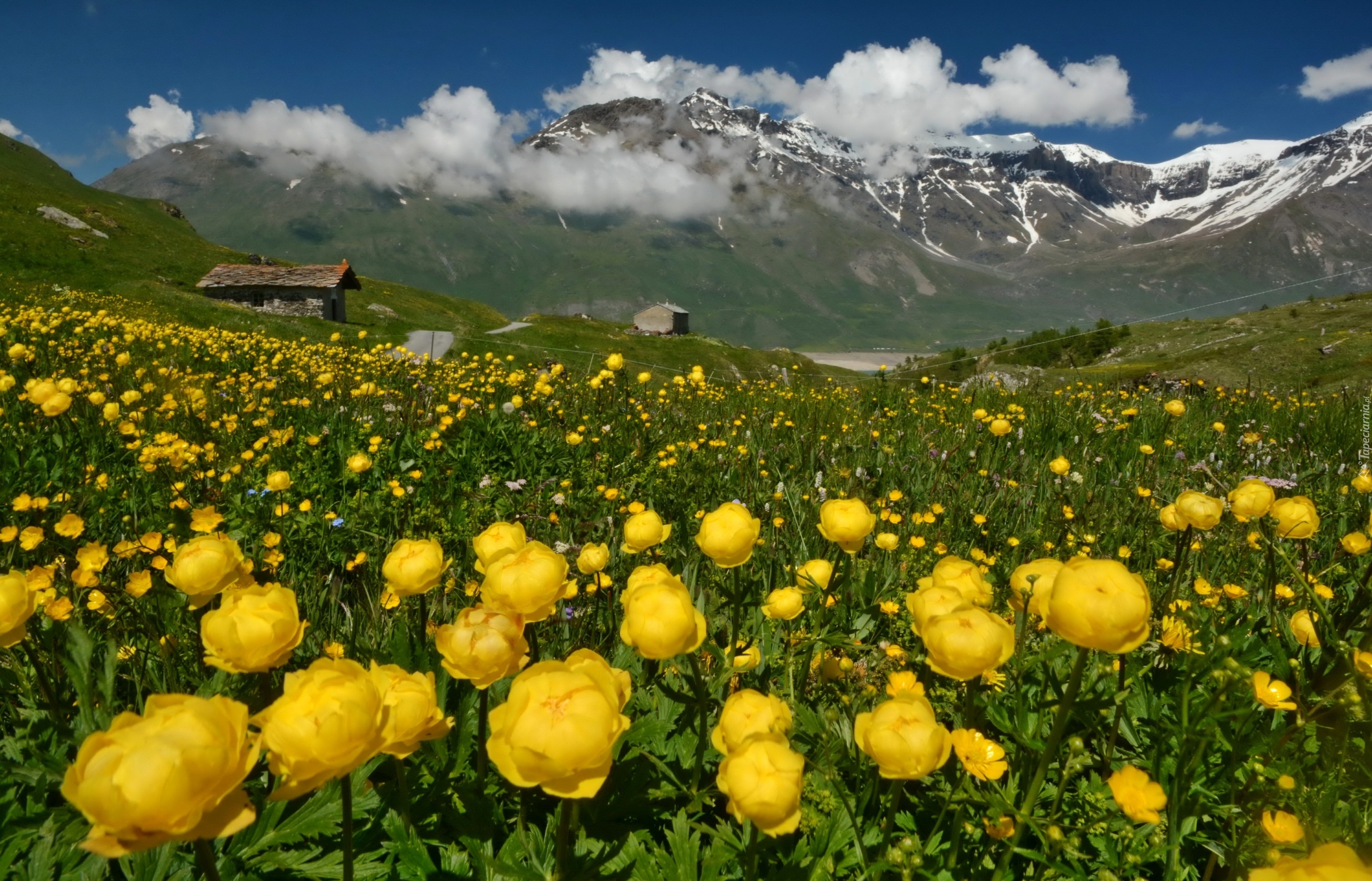 Edytor tapety: Góry, Chaty, Kwiaty, Zieleń