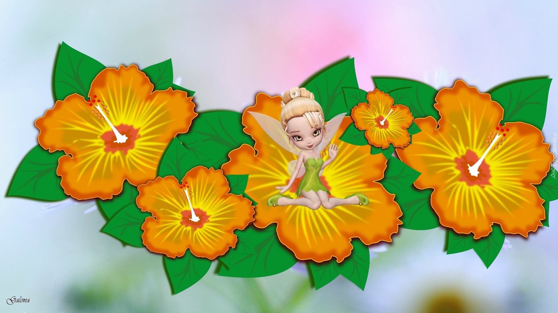 Edytor tapety: Pomarańczowe, Kwiaty, Laleczka