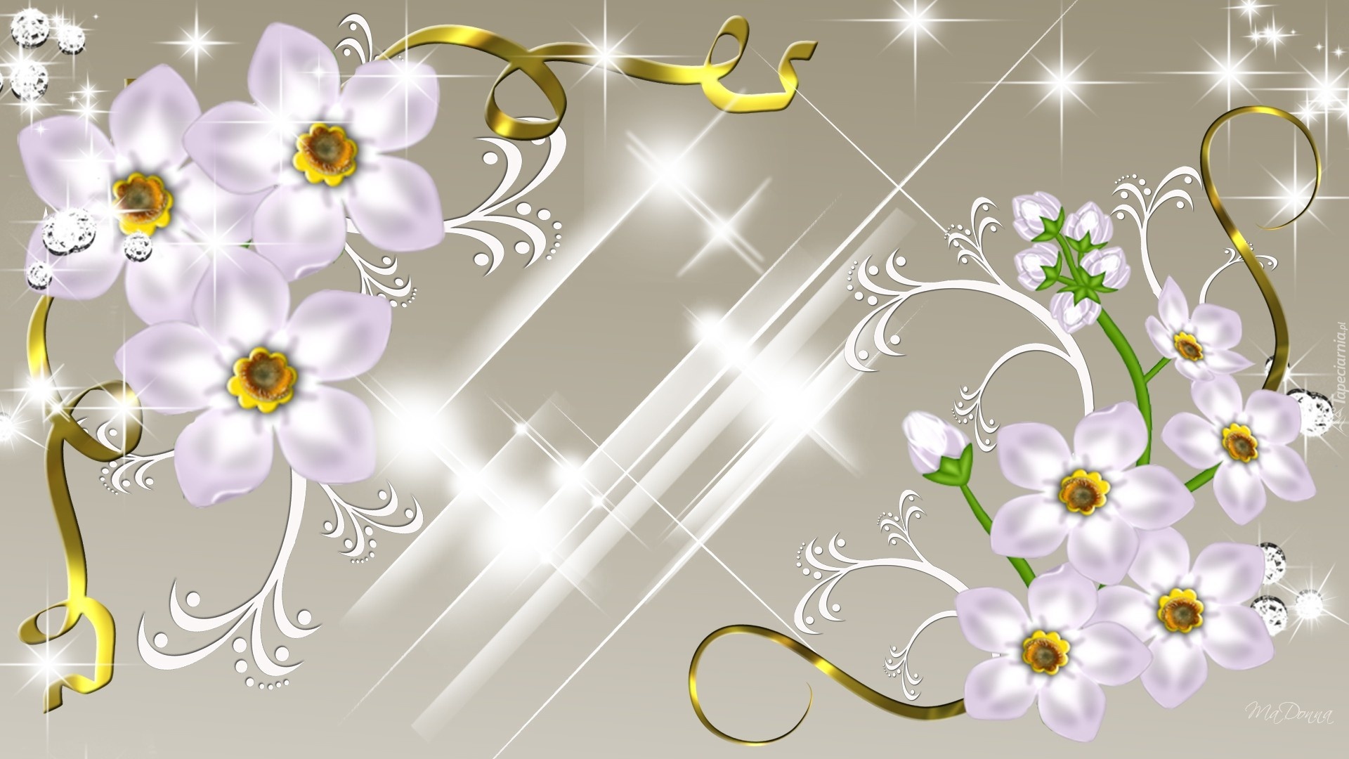 Edytor tapety: Kwiatki, Ornamenty, Złoty, Biały