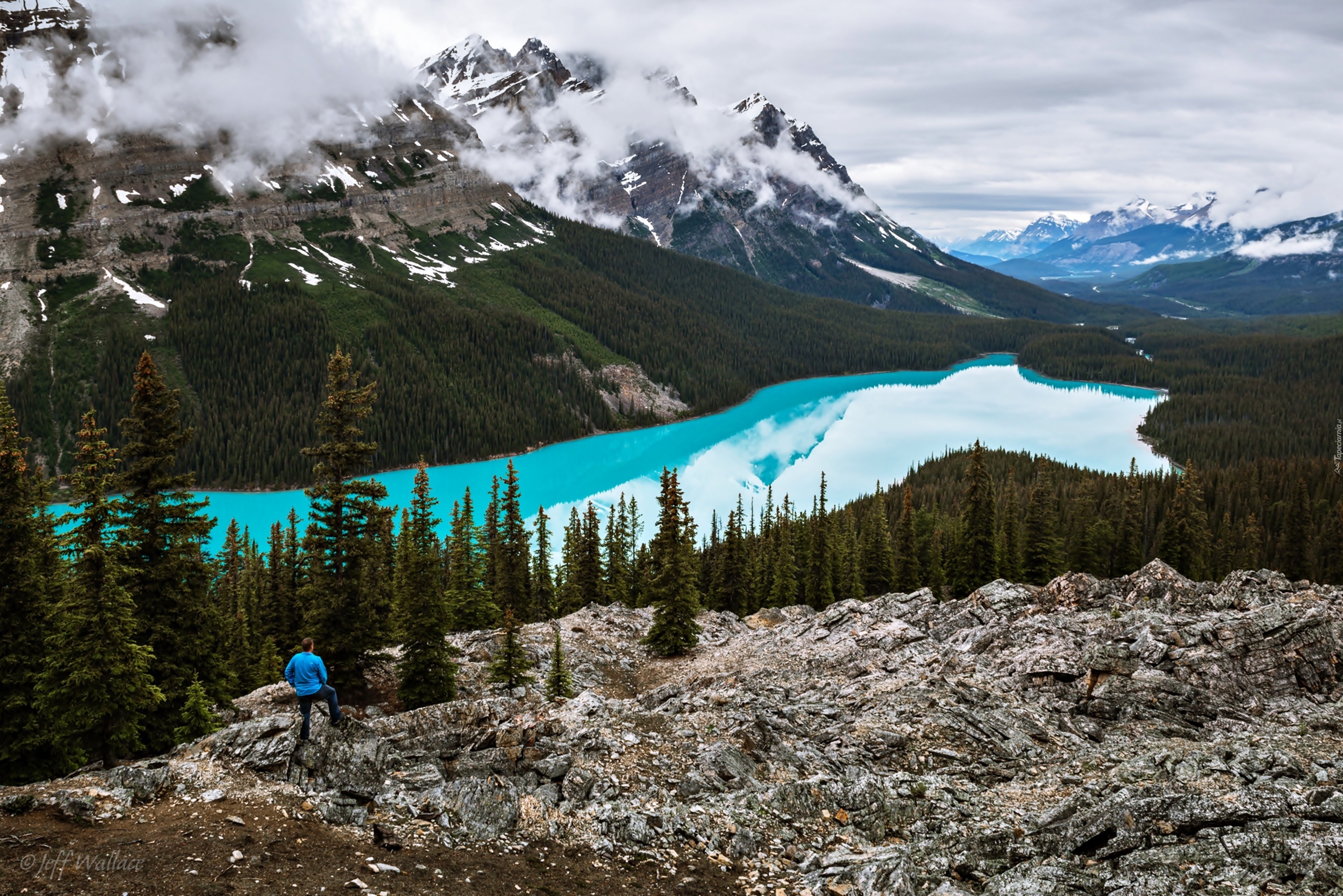 Edytor tapety: Góry, Jezioro, Mężczyzna, Drzewa