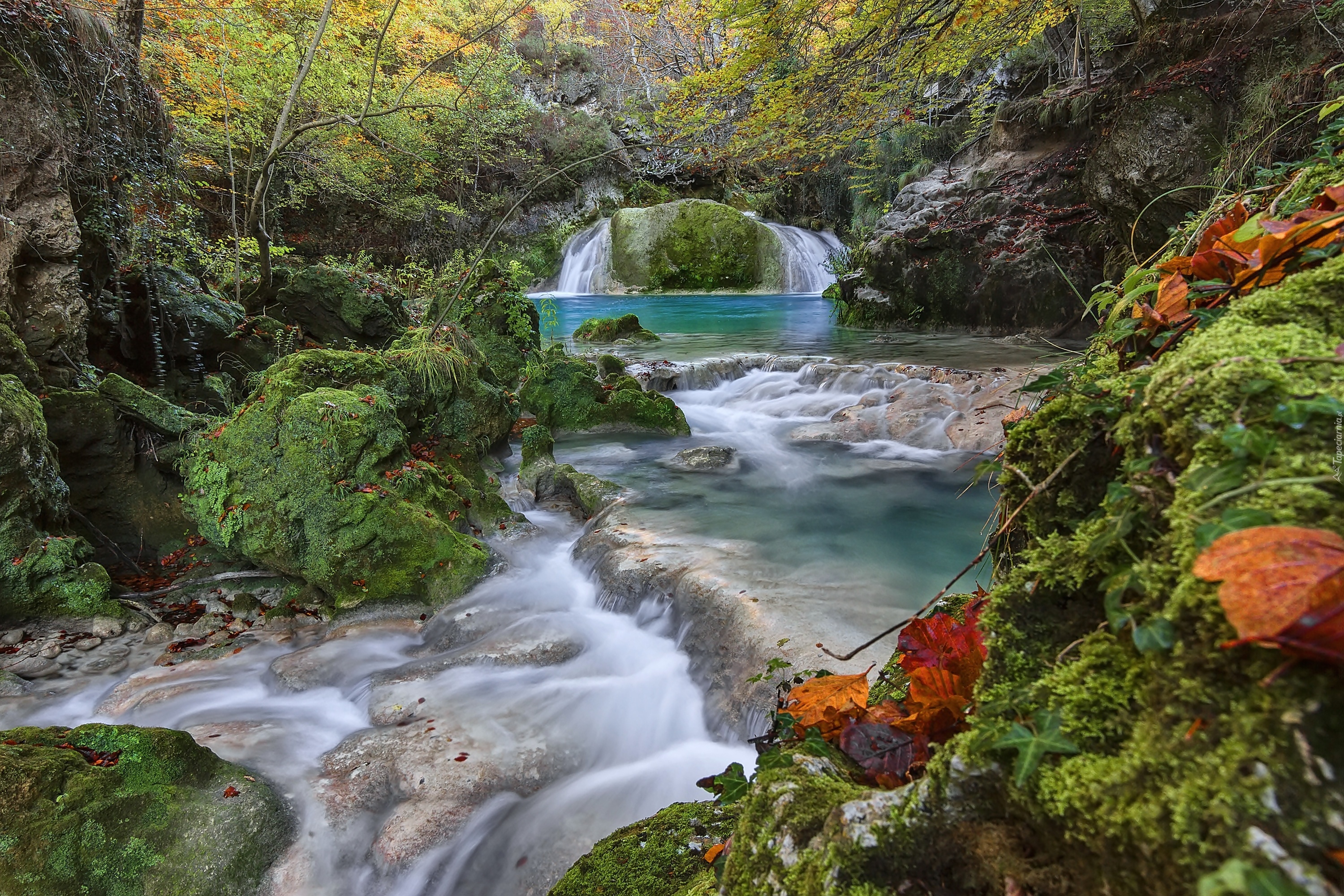 Edytor tapety: Wodospad, Las, Rzeka