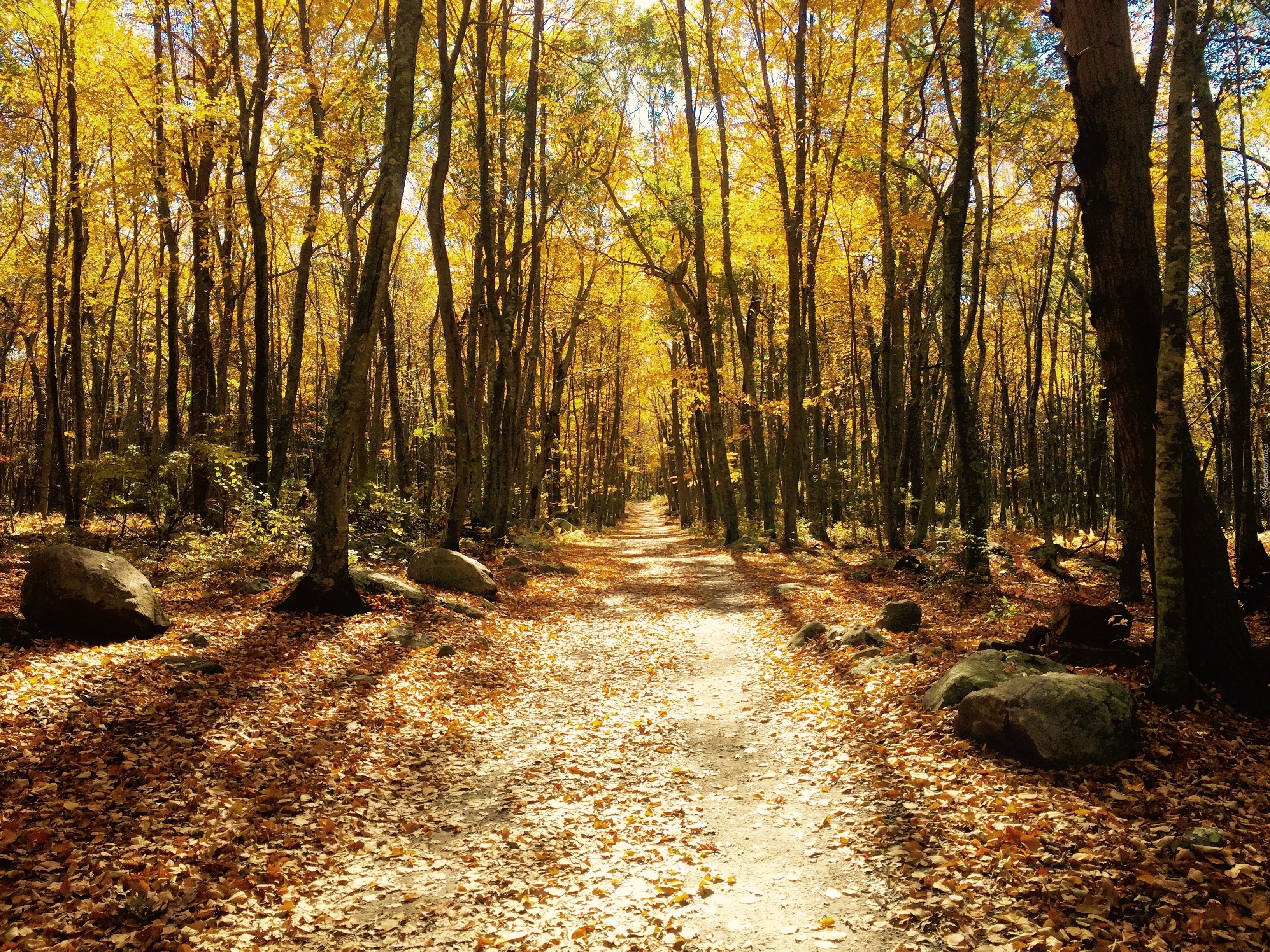 Edytor tapety: Jesień, Las, Drzewa, Liście, Ścieżka
