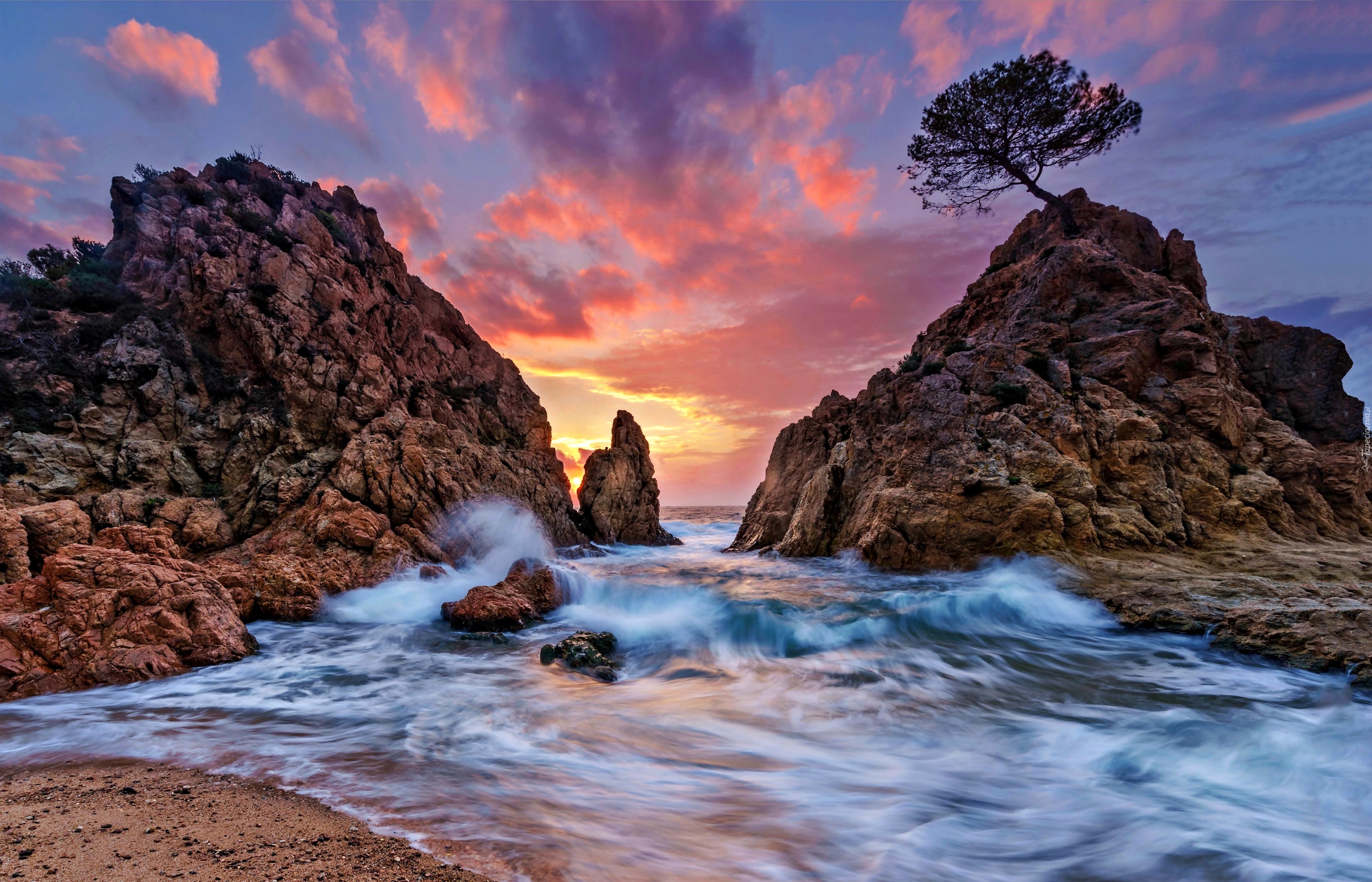 Edytor tapety: Morze, Skały, Zachód, Słońca