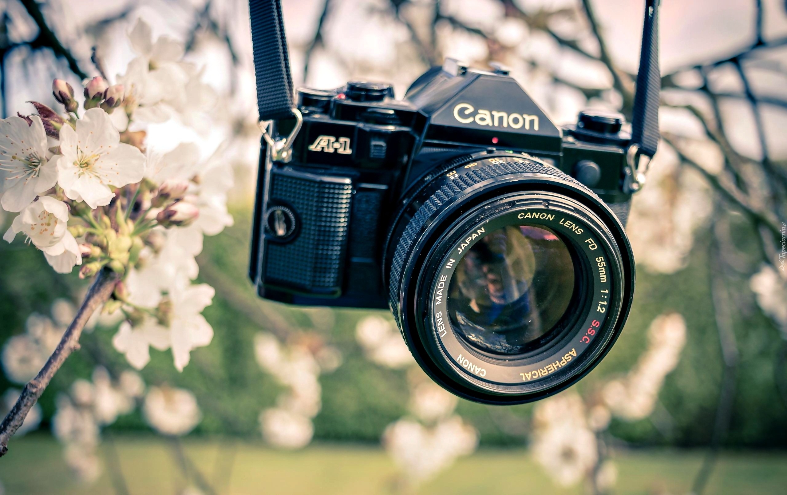 Edytor tapety: Aparat, Fotograficzny, Canon, Kwitnące, Gałązki