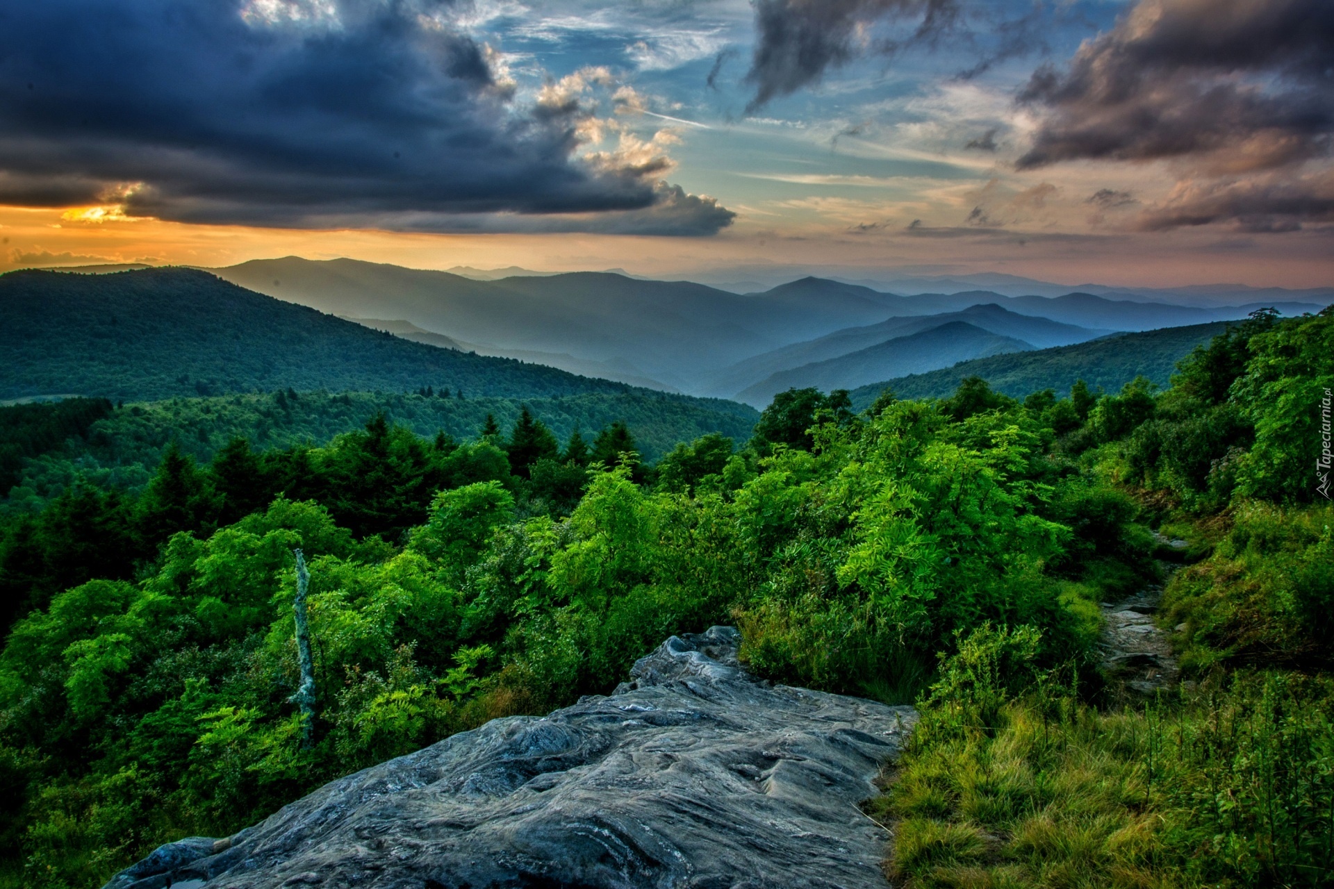 Edytor tapety: Góry, Zachód, Słońca, Skały, Roślinność, Błękit, Niebo