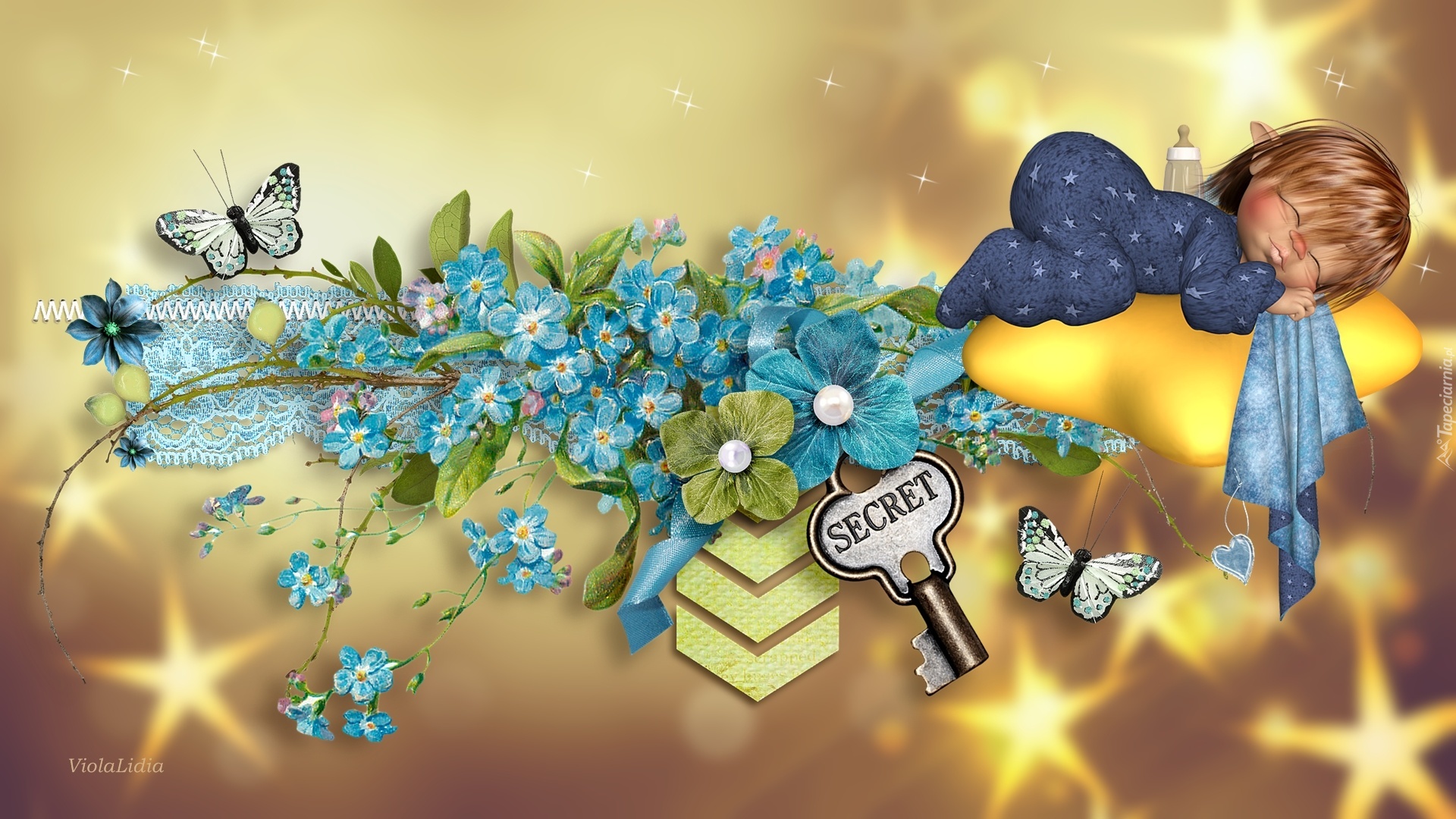Edytor tapety: Grafika, Laleczka, Kompozycja, Sen, Sny