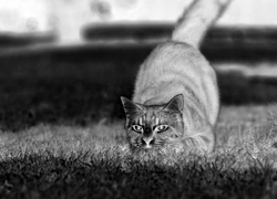 Edytor tapety: Kot, Szary, Przyczajony, Trawa
