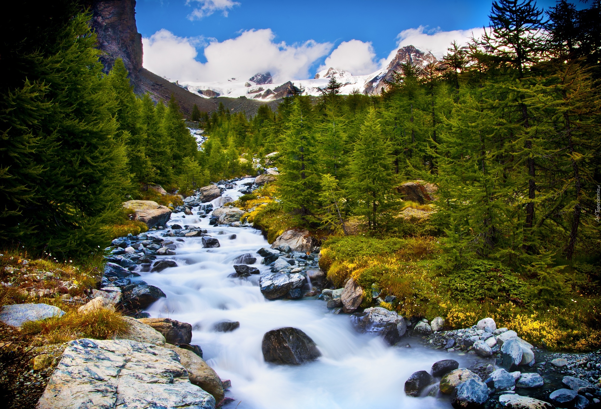 Edytor tapety: Rzeka, Kamienie, Drzewa, Roślinność, Góry