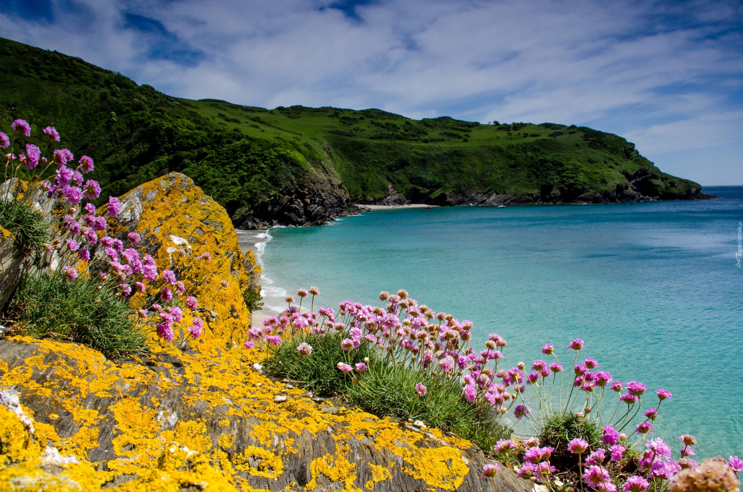 Edytor tapety: Wybrzeże, Ocean, Kwiaty, Roślinność