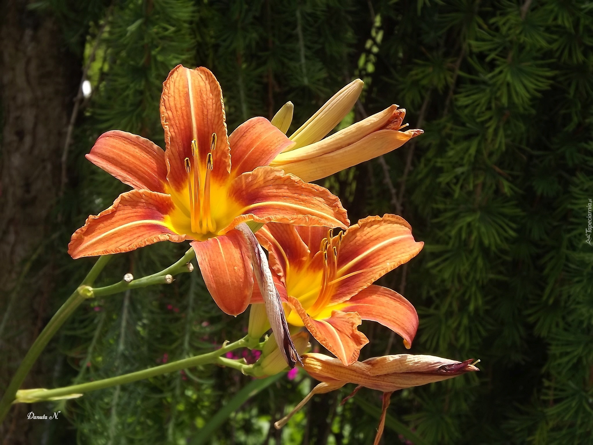 Edytor tapety: Liliowiec, Pomarańczowy, Drzewa