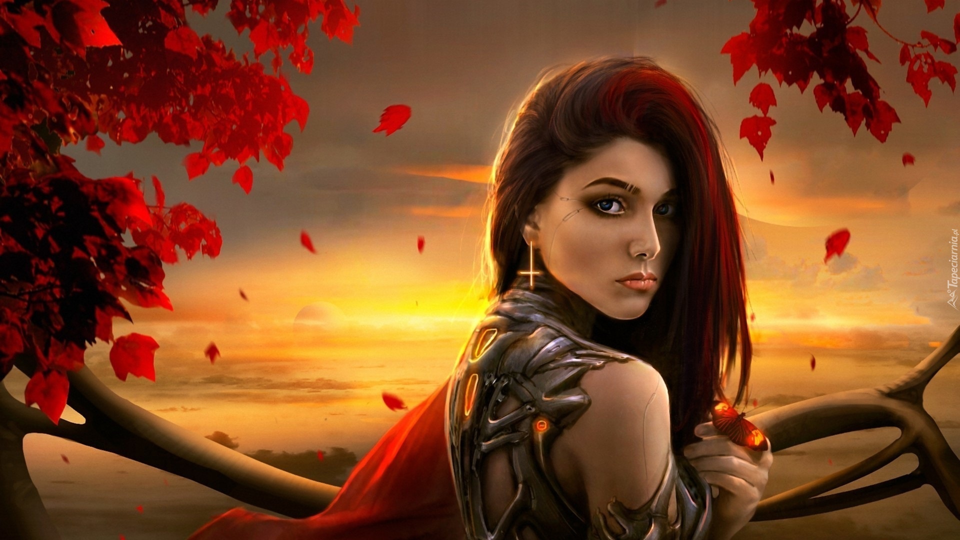 Edytor tapety: Kobieta, Fantasy, Drzewo, Liście