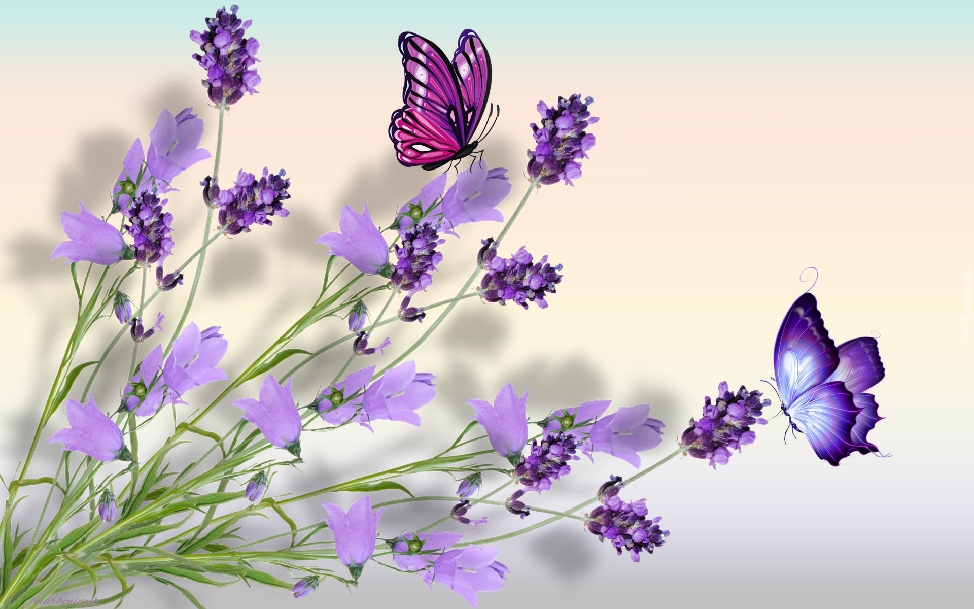 Edytor tapety: Kwiaty, Lawenda, Dzwonki, Motyle
