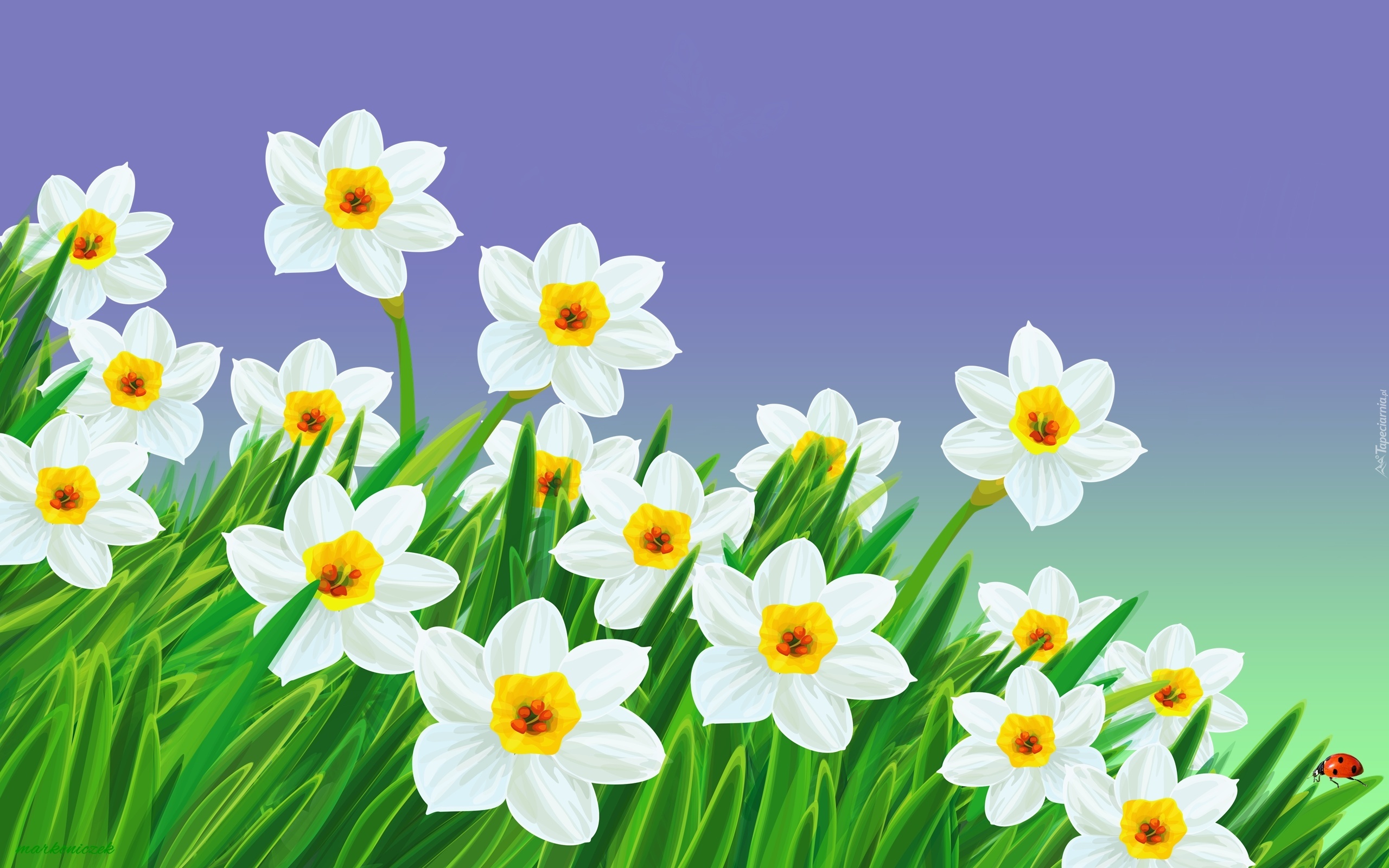 Edytor tapety: Kwiaty, Narcyzy, Biedronka