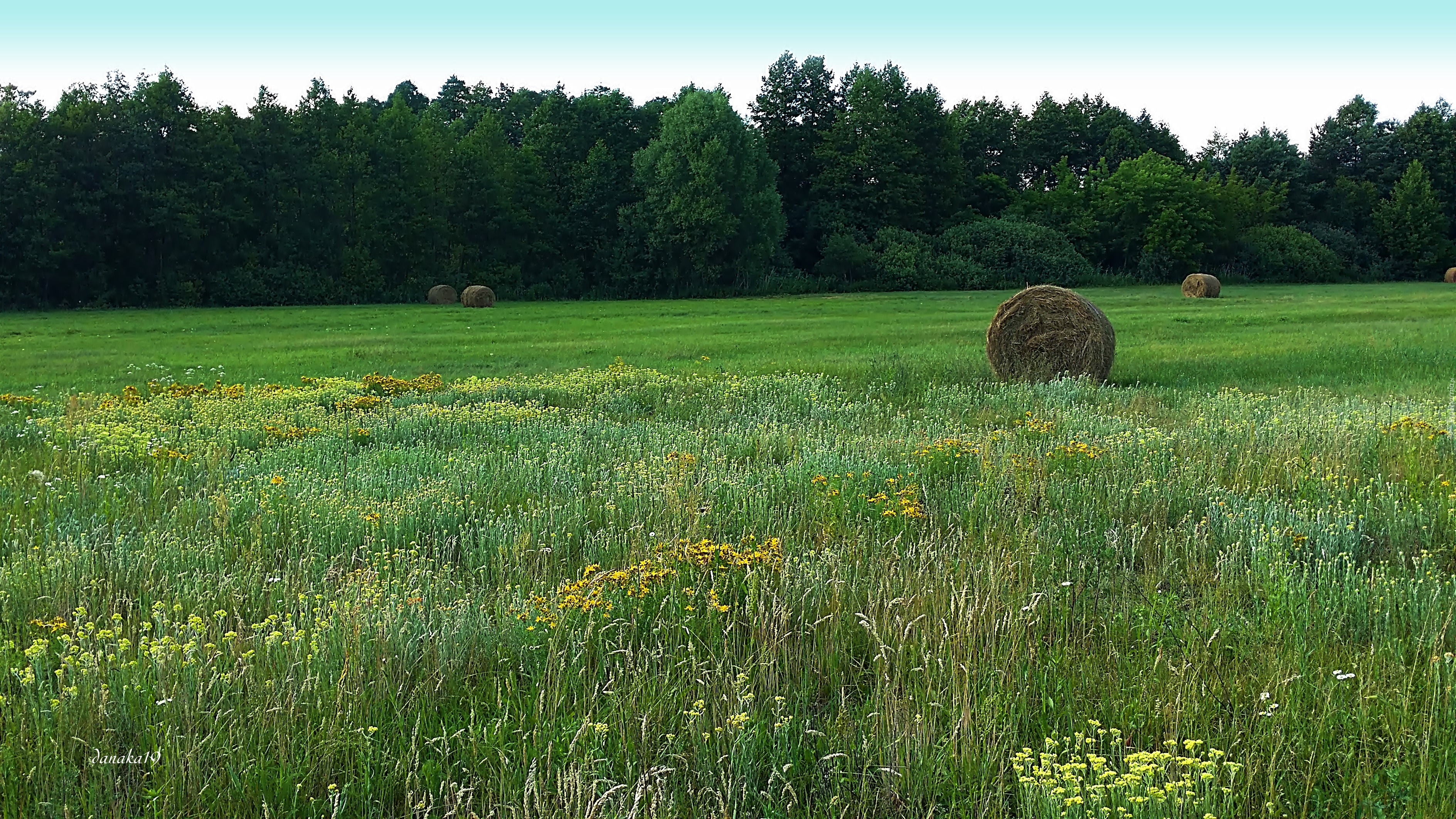 Edytor tapety: Łąka, Kwiaty, Siano, Trawa, Lato