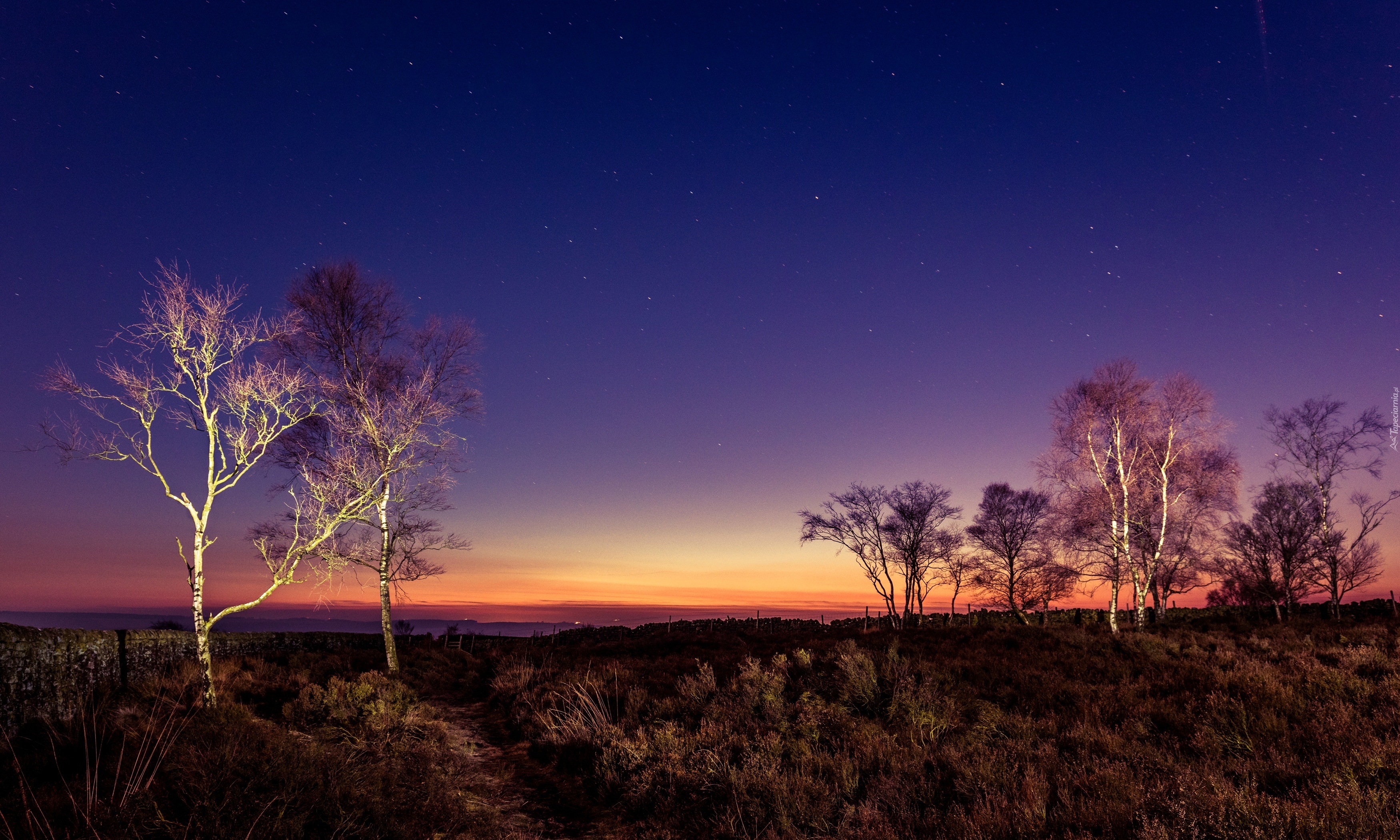 Edytor tapety: Zachód, Słońca, Łąka, Drzewa