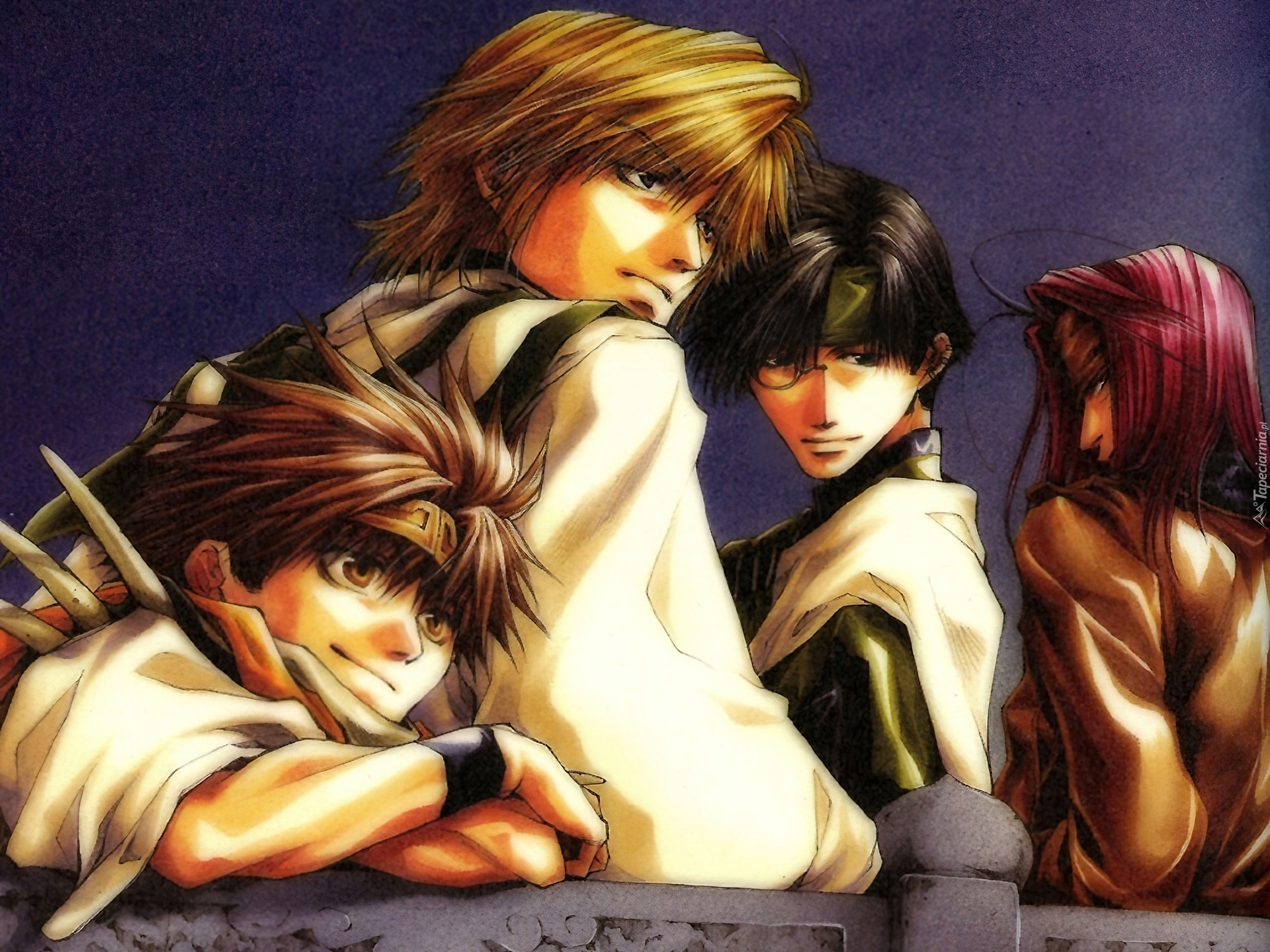 Edytor tapety: Saiyuki, fioletowe tło, postacie