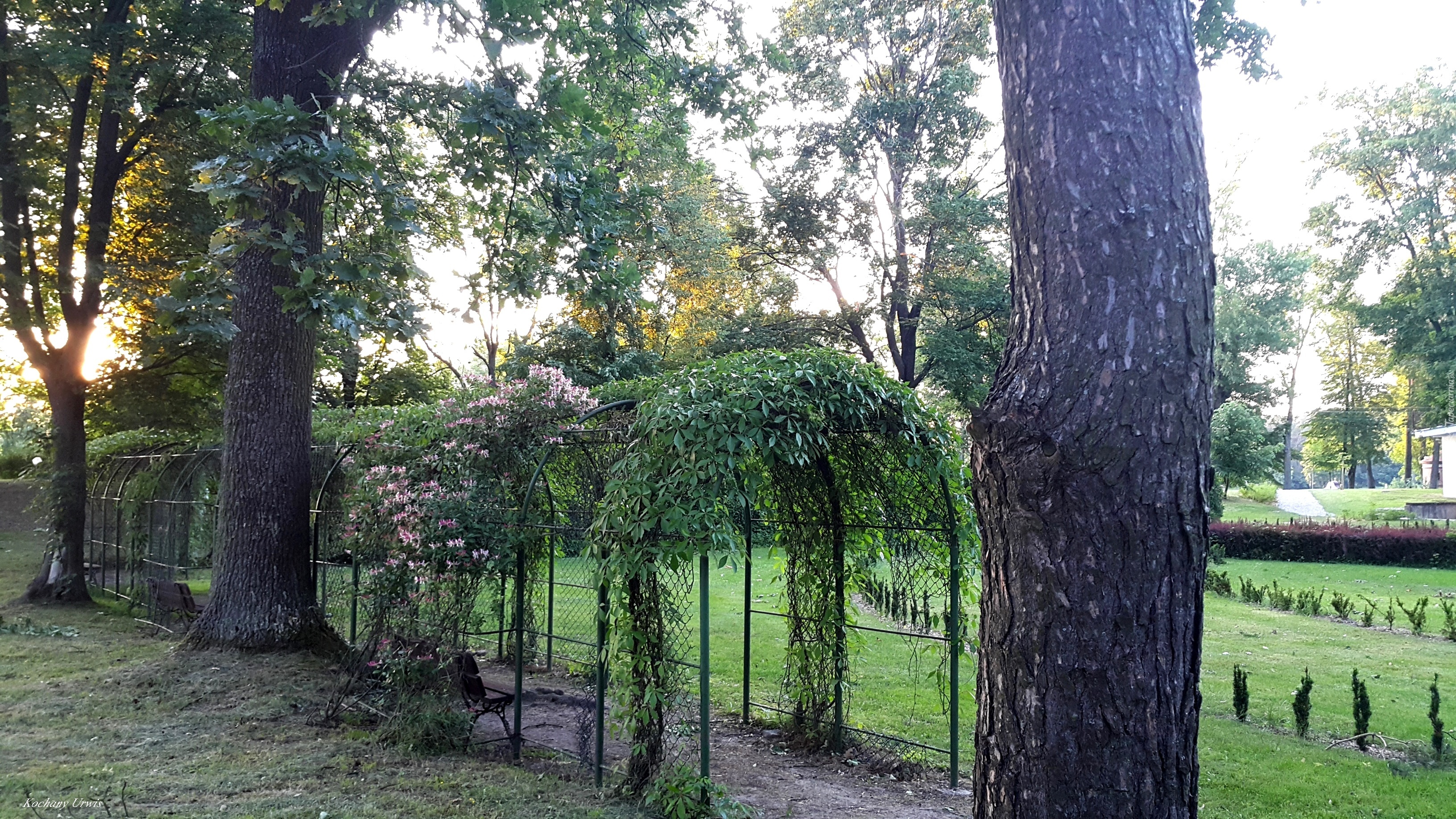 Edytor tapety: Park, Drzewa, Alejka, Tunel, Rośliny, Ławka