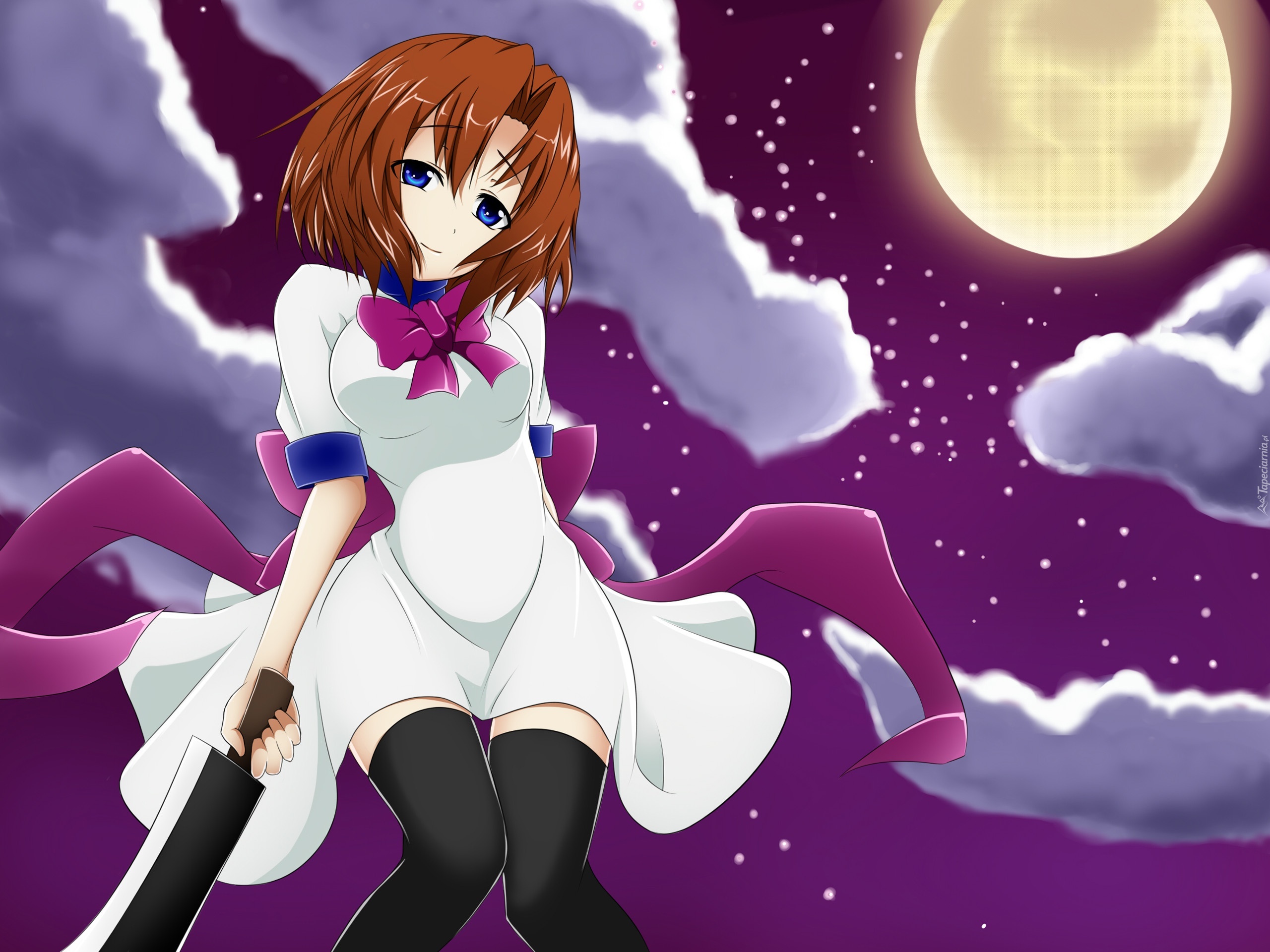 Edytor tapety: Dziewczyna, Miecz, Niebo, Księżyc, Chmury, Manga, Anime