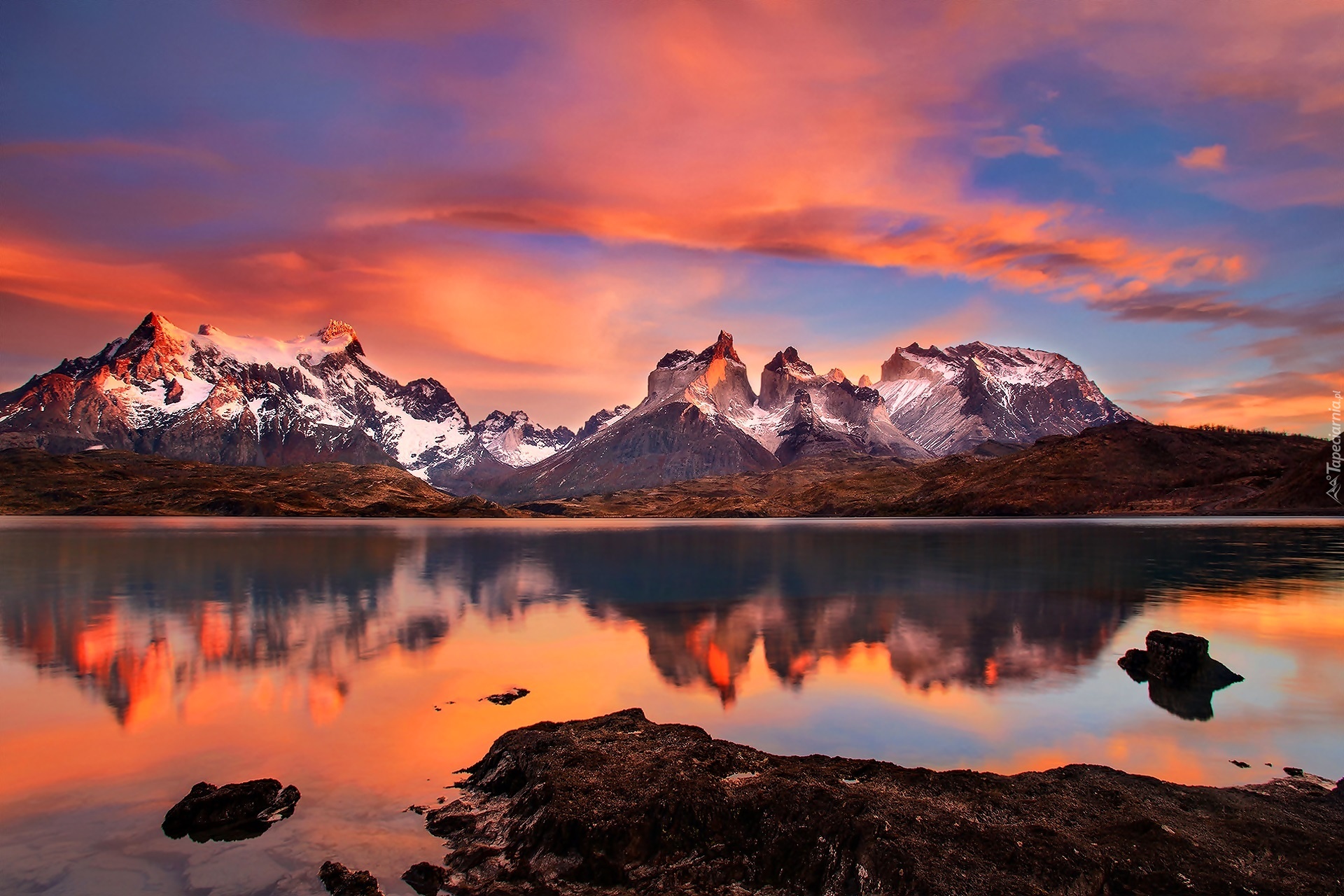 Edytor tapety: Góry, Jezioro, Wschód, Słońca, Chile