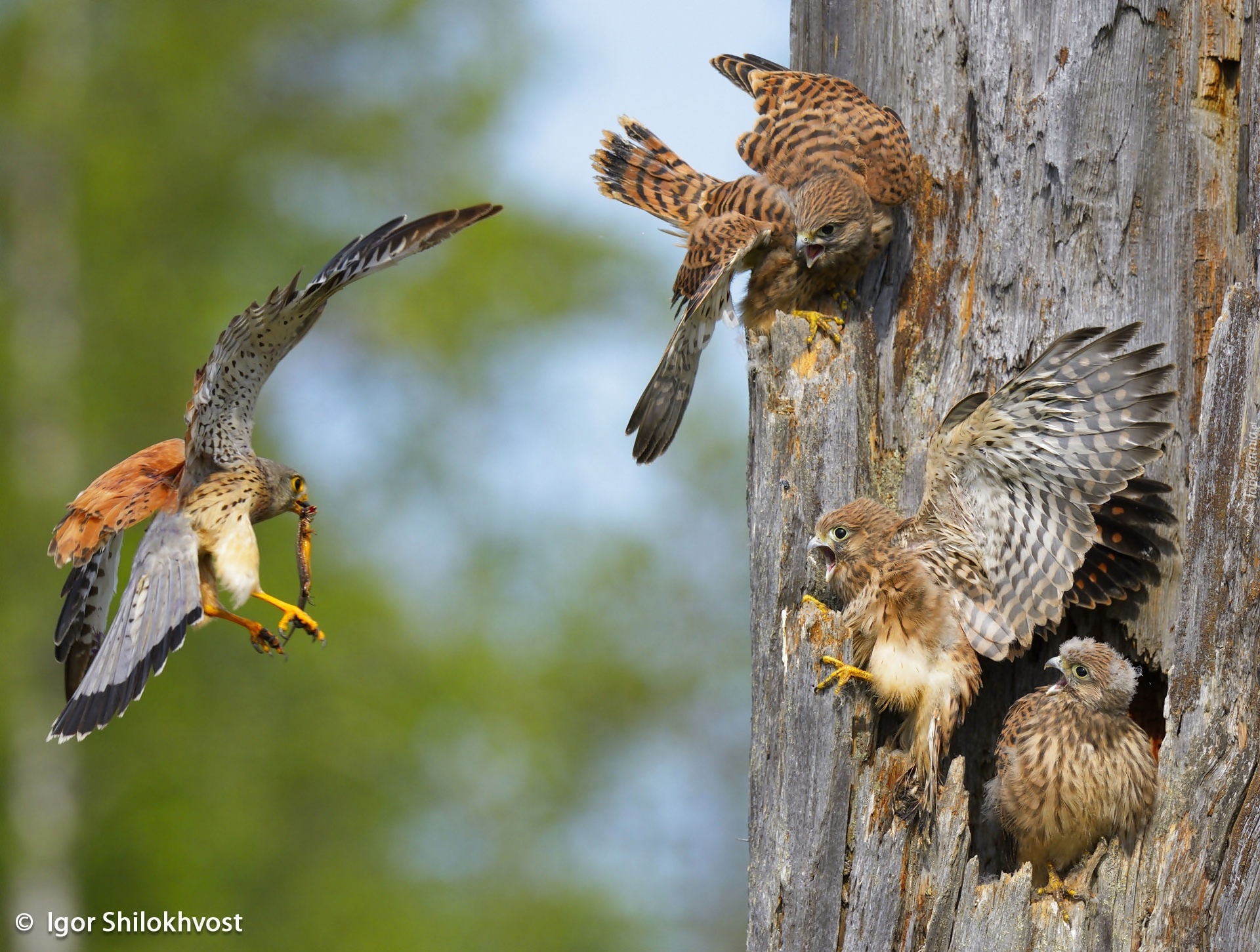 Edytor tapety: Pustułka, Młode, Dziupla, Karmienie