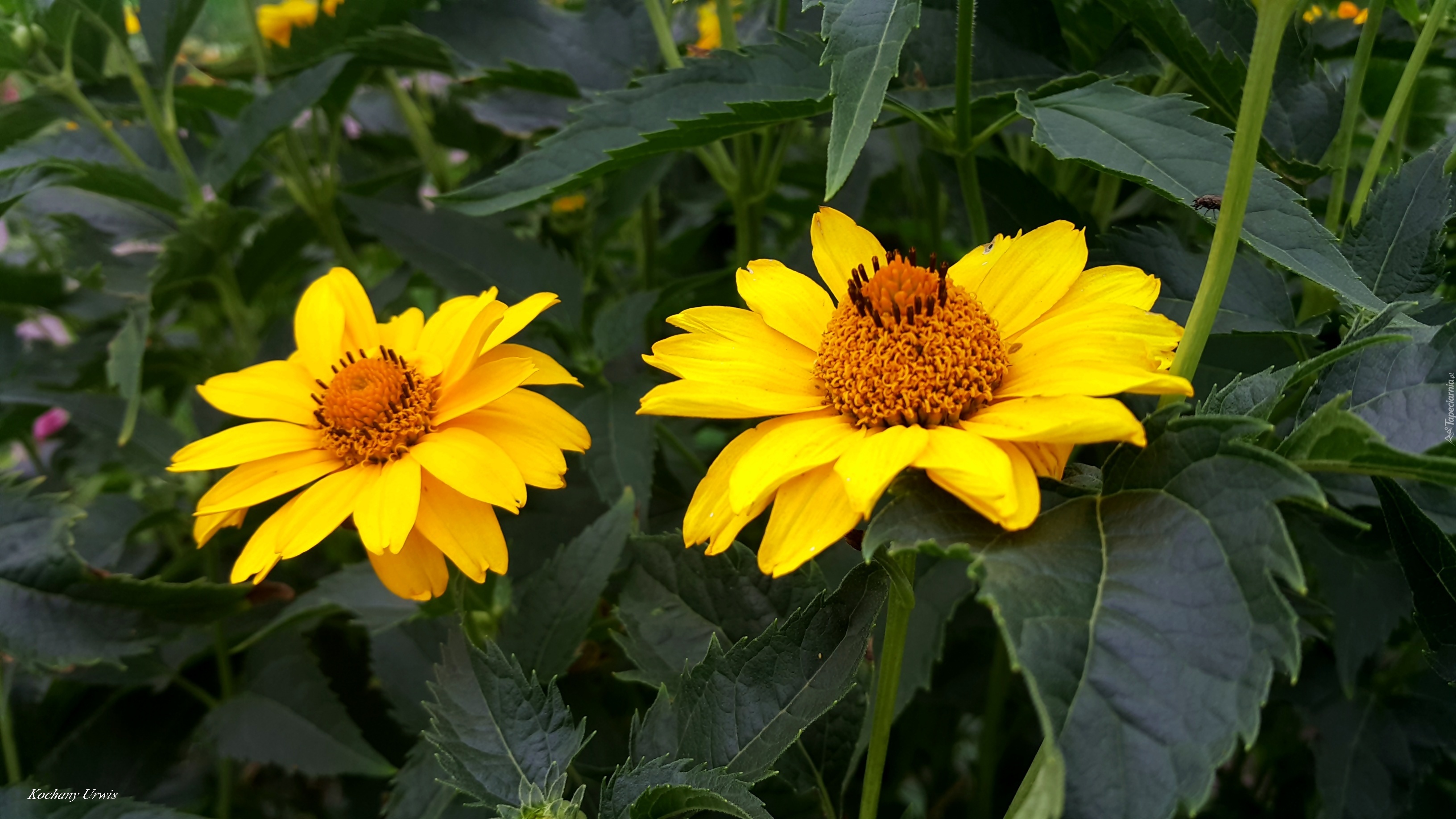 Edytor tapety: Słoneczniczek, Szorstki, Żółte, Kwiaty, Liście
