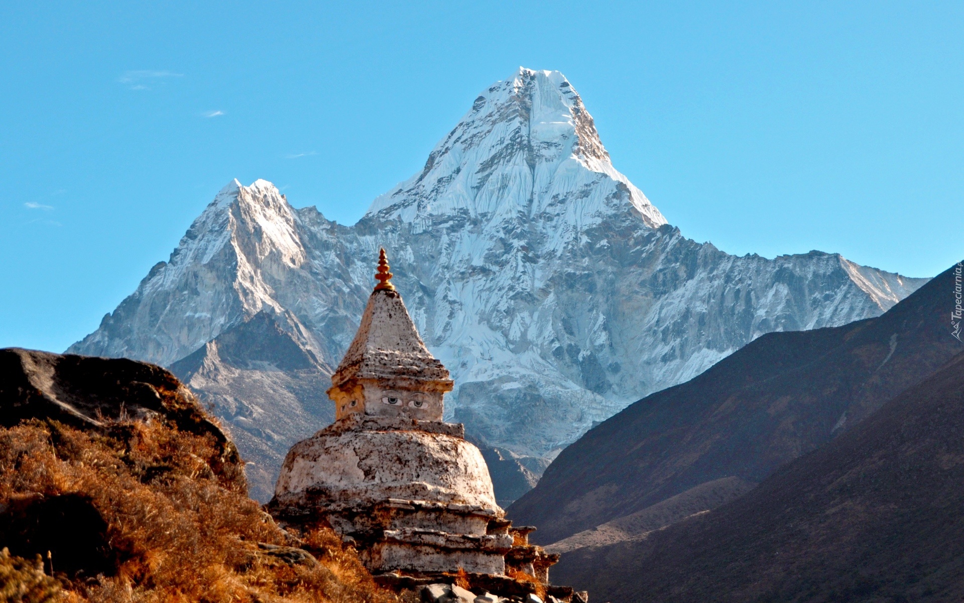 Edytor tapety: Himalaje, Góry, Szczyt, Ama Dablam, Świątynia