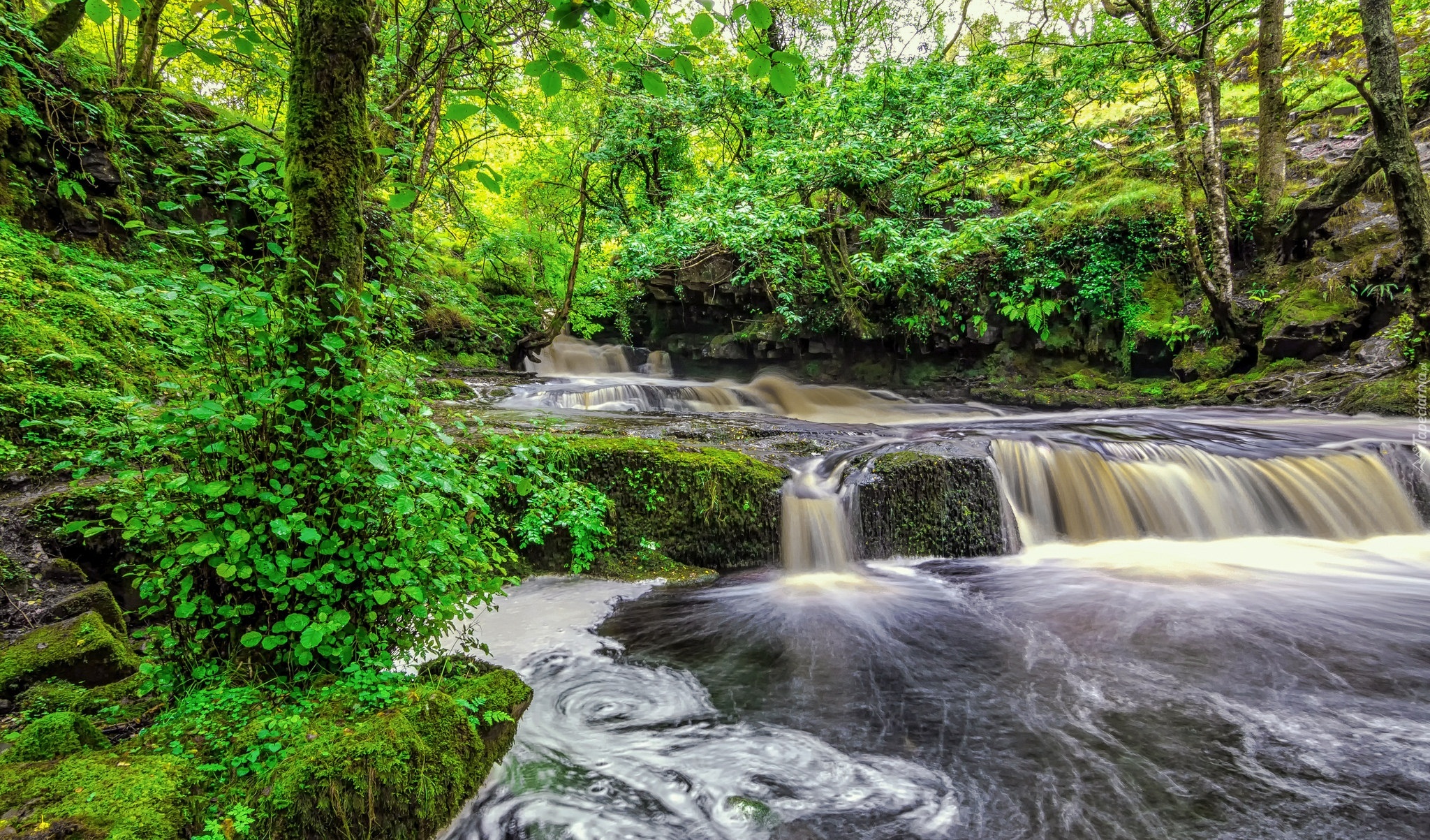 Edytor tapety: Wodospad, Drzewa, Mech