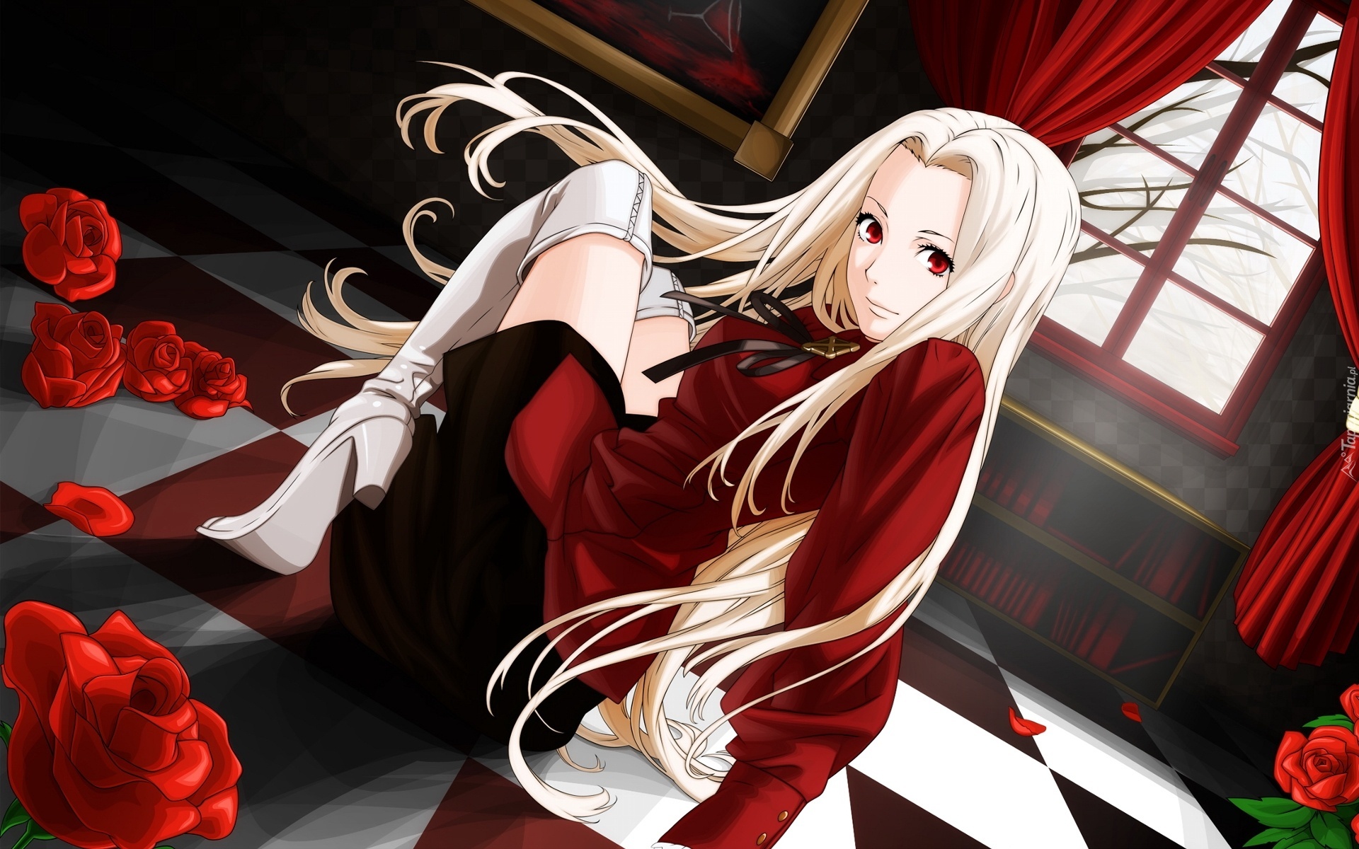 Edytor tapety: Dziewczyna, Róże, Salon, Okno, Manga, Anime