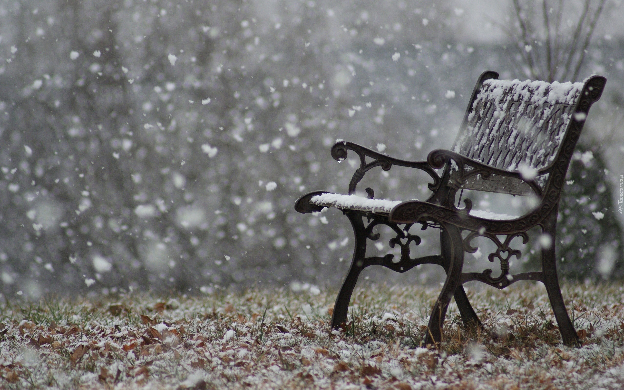 Edytor tapety: Zima, Padający, Śnieg, Ławeczka