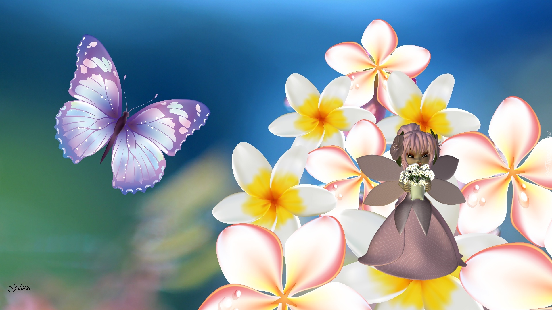 Edytor tapety: Kwiaty, Wróżka, Laleczka, Motyl, Grafika