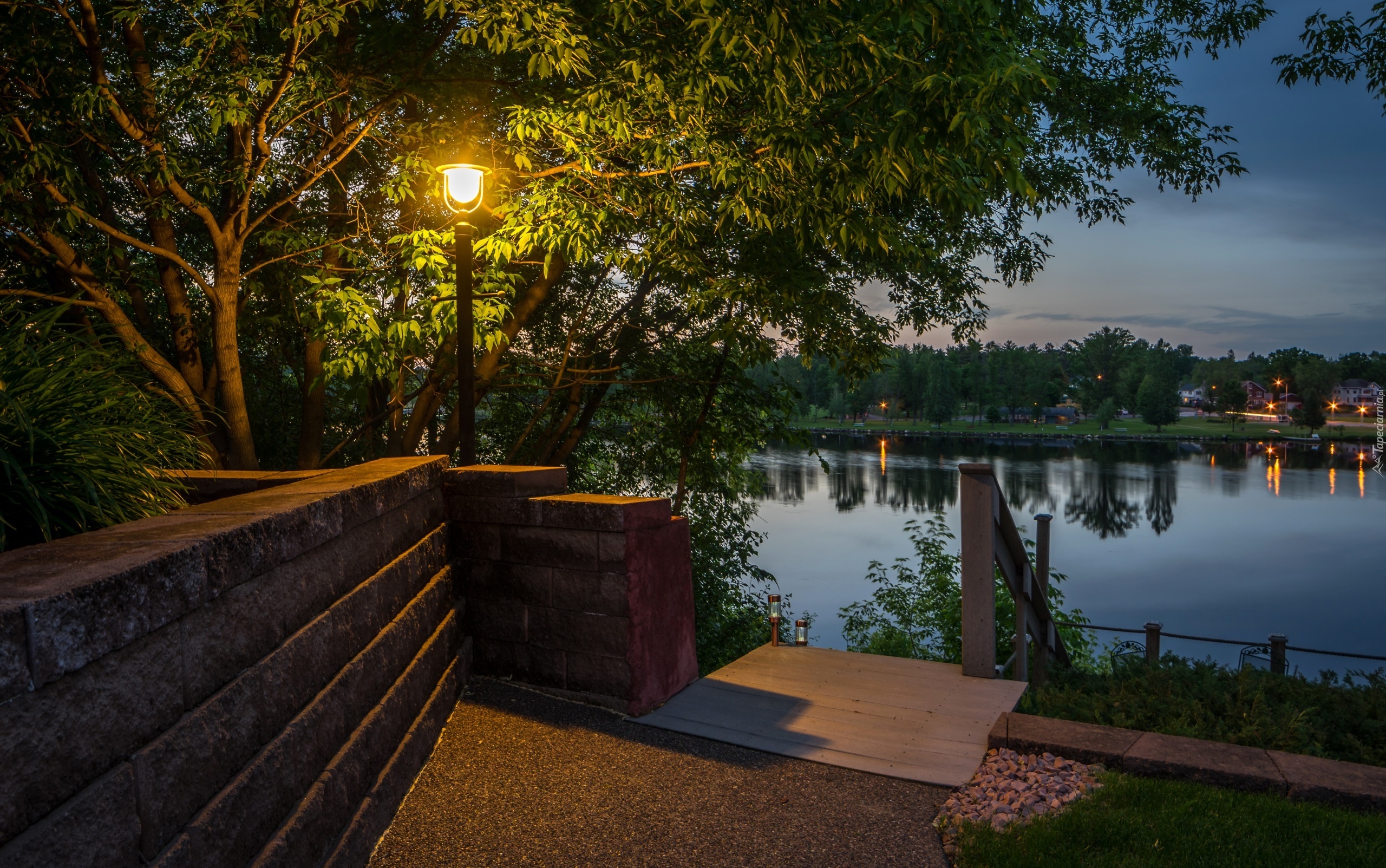 Edytor tapety: Park, Latarnia, Rzeka, Noc