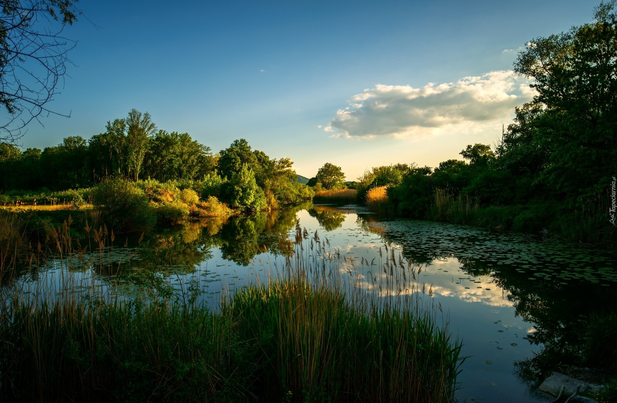 Edytor tapety: Lato, Rzeka, Zieleń, Przebijające światło