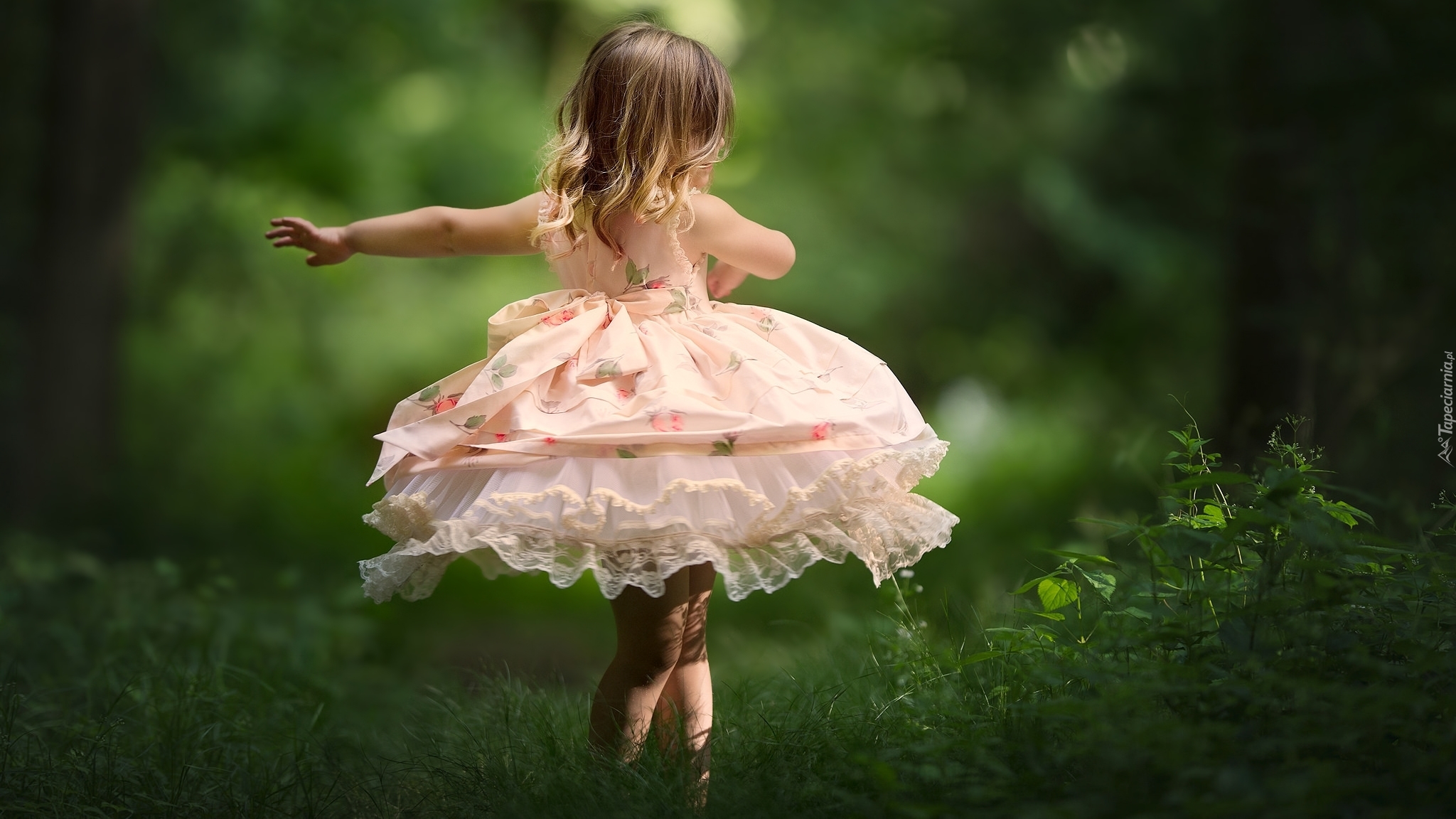 Edytor tapety: Las, Tańcząca, Dziewczynka, Sukienka