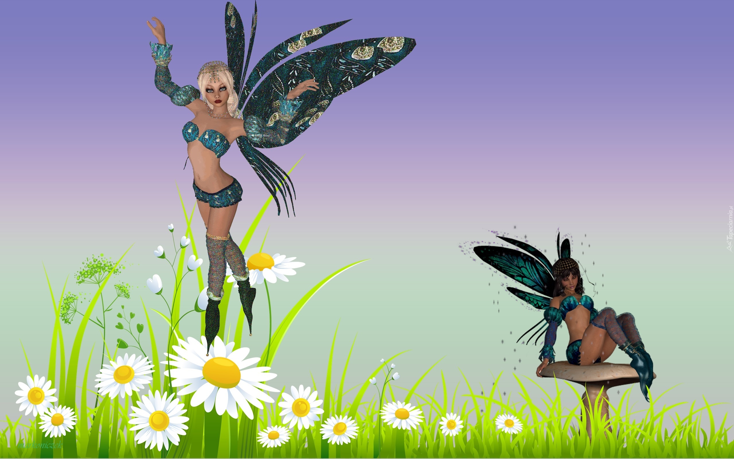 Edytor tapety: Grafika, Kwiaty, Motylki