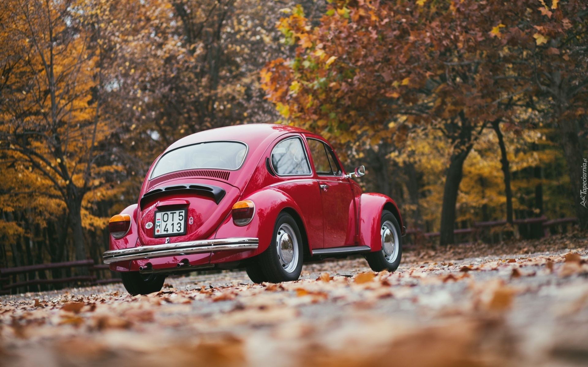 Edytor tapety: Jesień, Drzewa, Samochód, Volkswagen, Garbus