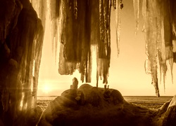 Edytor tapety: Morze, Jaskinia, Wschód, Słońca, Lodowe, Sople