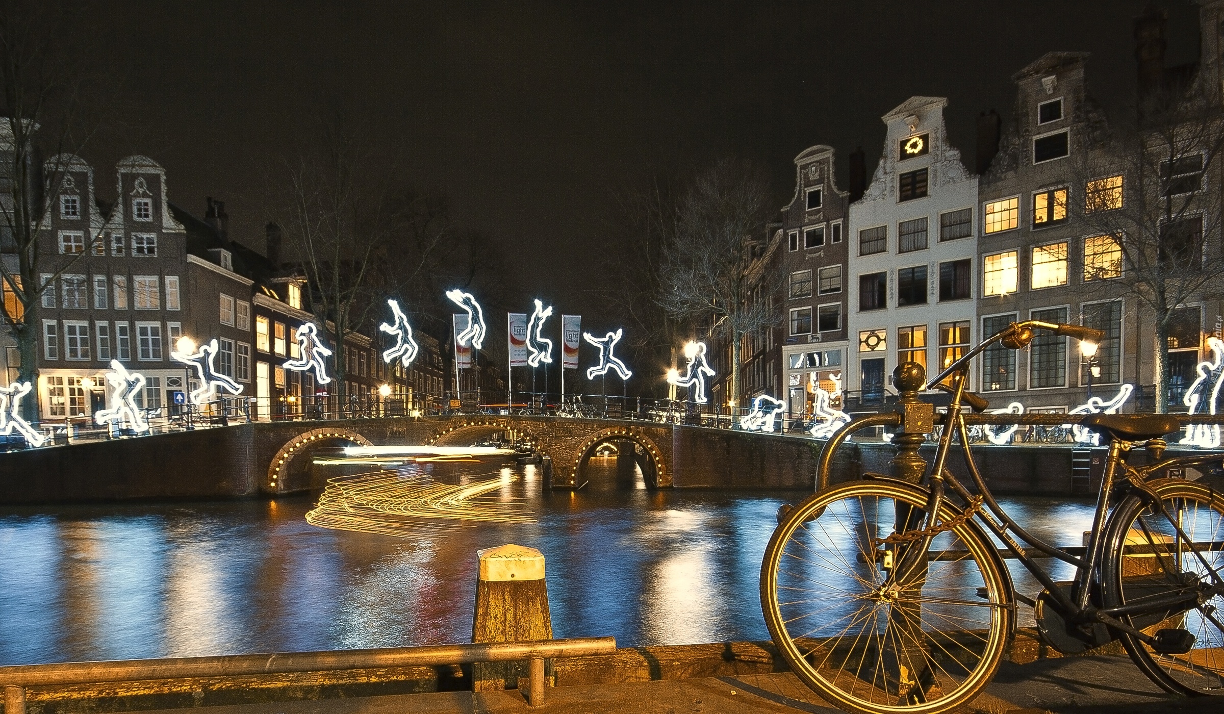 Edytor tapety: Miasto, Rzeka, Rower, Budynki, Most, Neony, Amsterdam